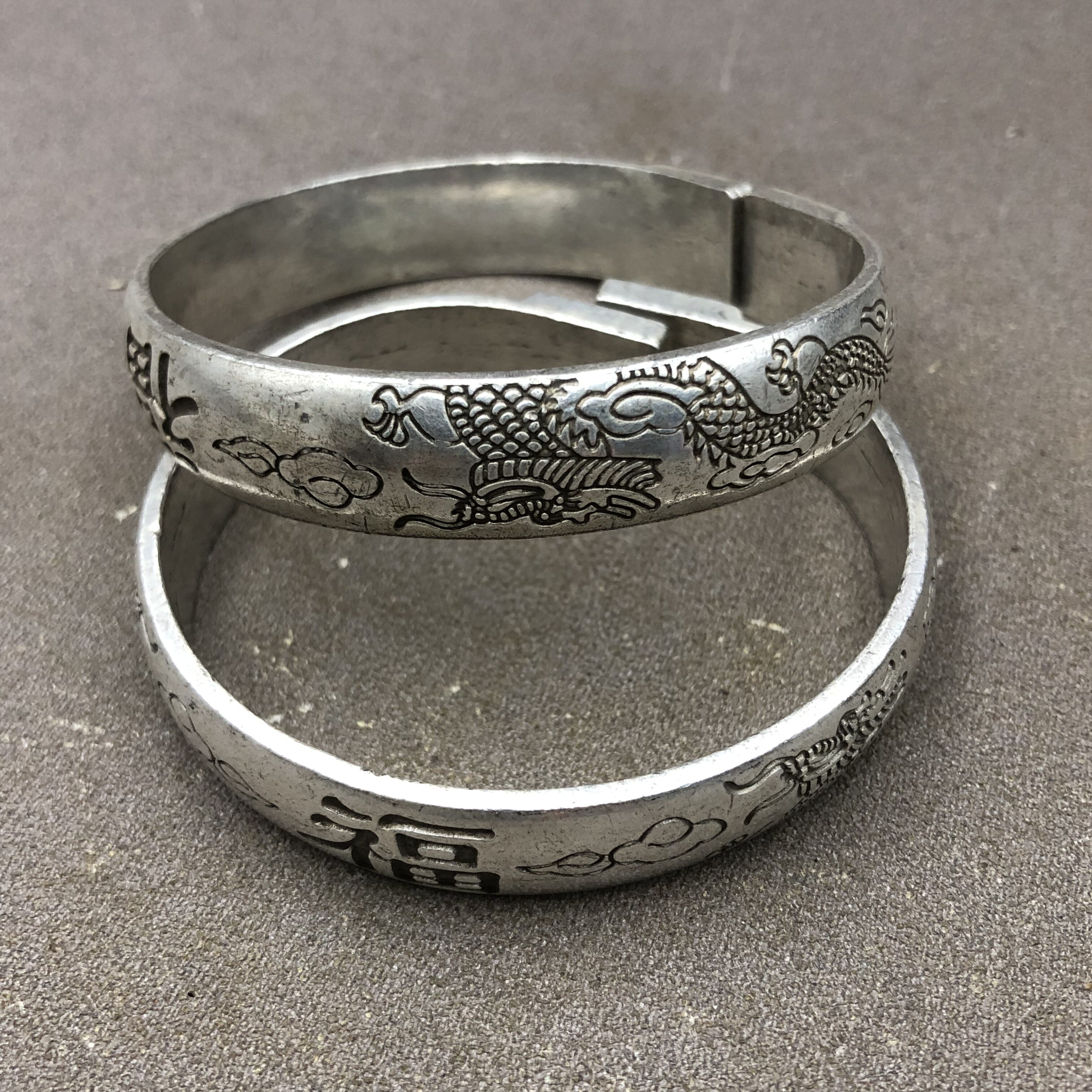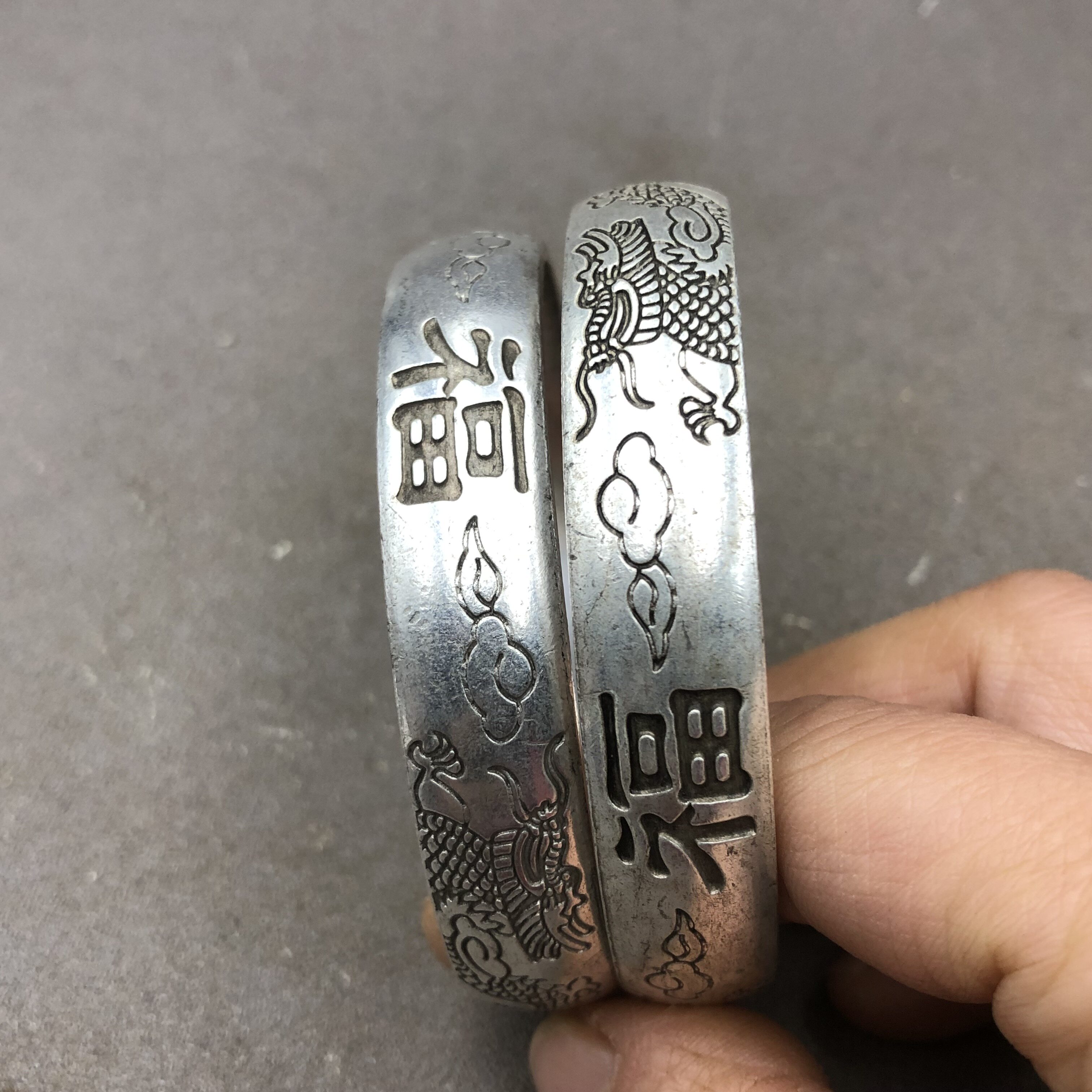 Antique Miscellaneous Bracelet Shuanglong Fu Zi Copper Gilt Silver Bracelet Counterpart Male and Female Jewelry Pair Price