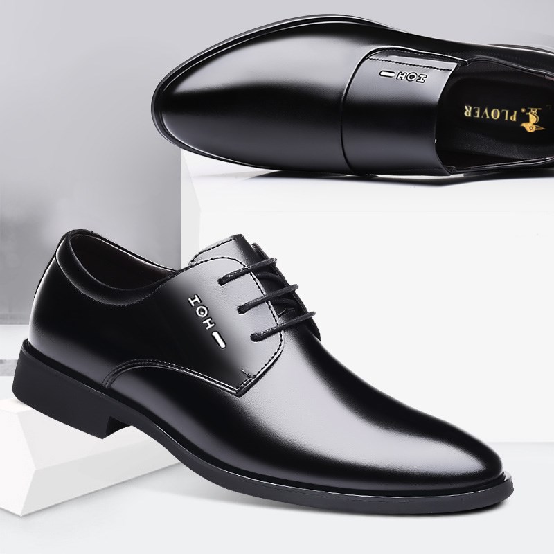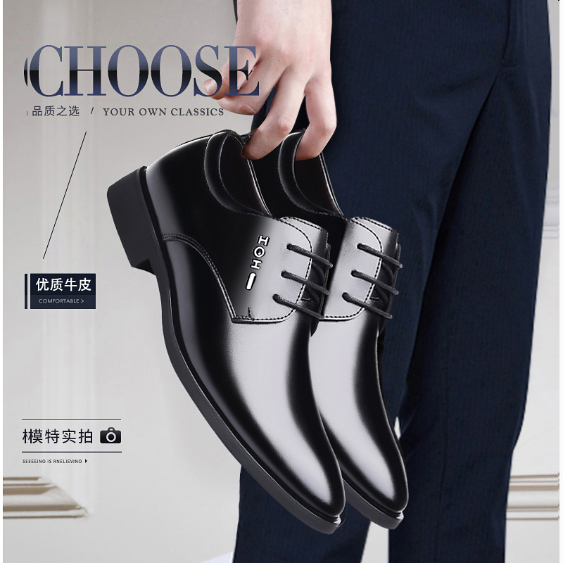 Woodpecker men's shoes plus velvet cotton leather shoes men's Korean version of genuine leather business formal dress inner height-increasing shoes youth trend wedding shoes