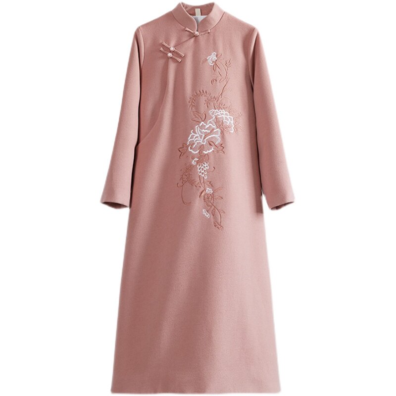 Literary retro Republic of China improved cheongsam dress embroidery Chinese style women's clothing Chinese Zen tea clothing women's autumn and winter clothing
