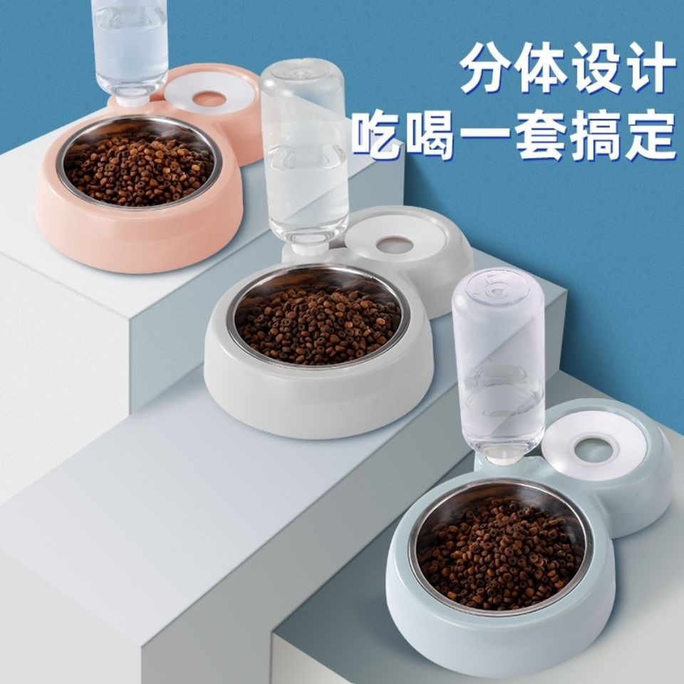 Dog basin cat bowl dog bowl double bowl automatic drinking water food basin dog cat drinking water bowl anti-overturning rice bowl pet supplies