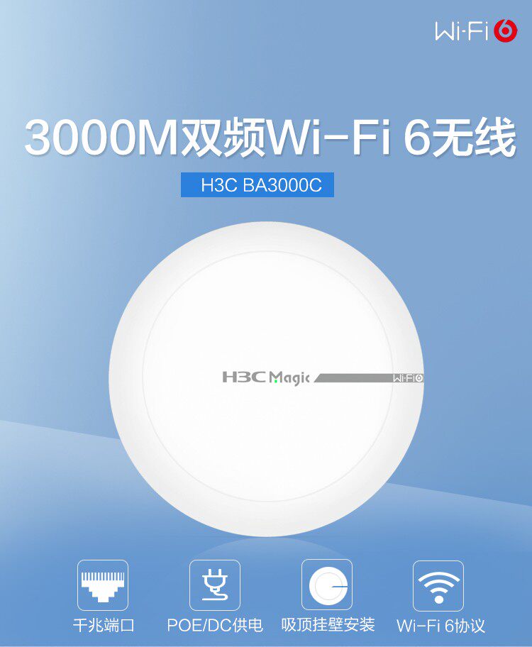 H3C Hua Three BA3000C Large Family Type Villa WiFi6 Panel Suction Top AP Dual Frequency Wireless Routing AX60 61