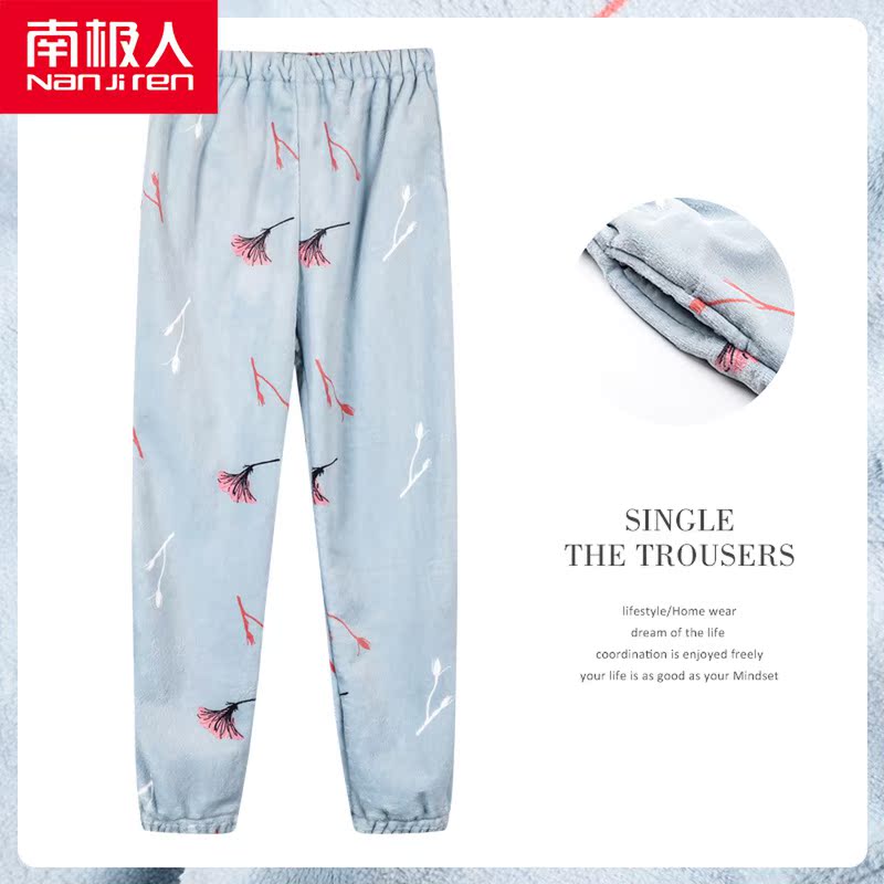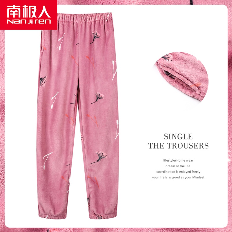 Flannel pajama pants ladies trousers autumn and winter coral fleece plus velvet warm leisure fairy warm pants home pants