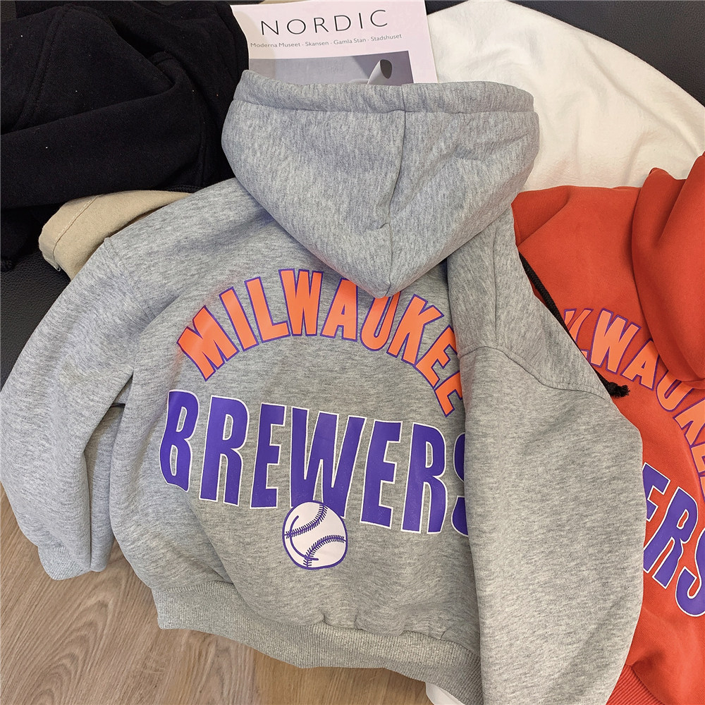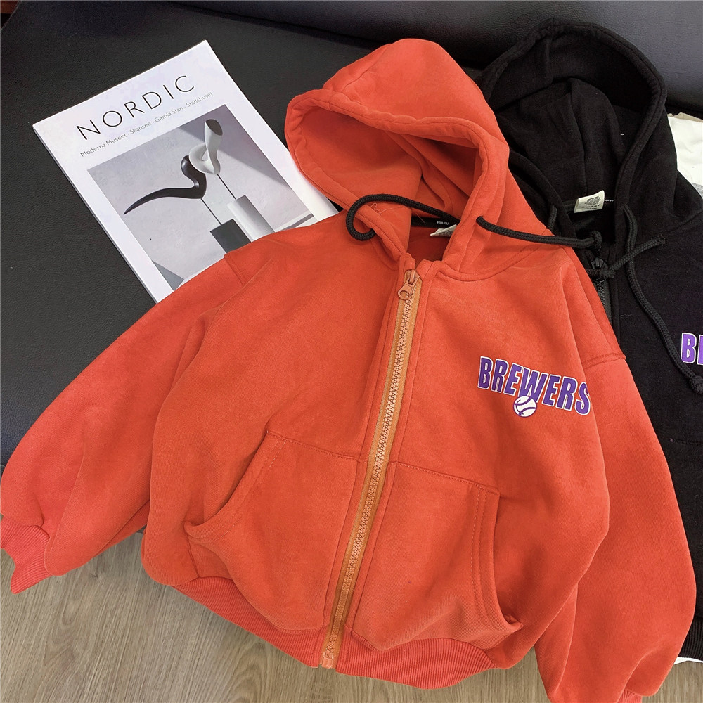 Children's fleece sweater hooded cardigan 2022 new boy's autumn and winter coat Korean style children's clothing baby top