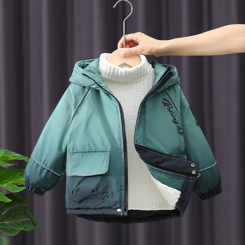 Boys coat in autumn and winter Park overcomes 2022 new children plus thickening cotton clothes baby's first winter cotton clothes