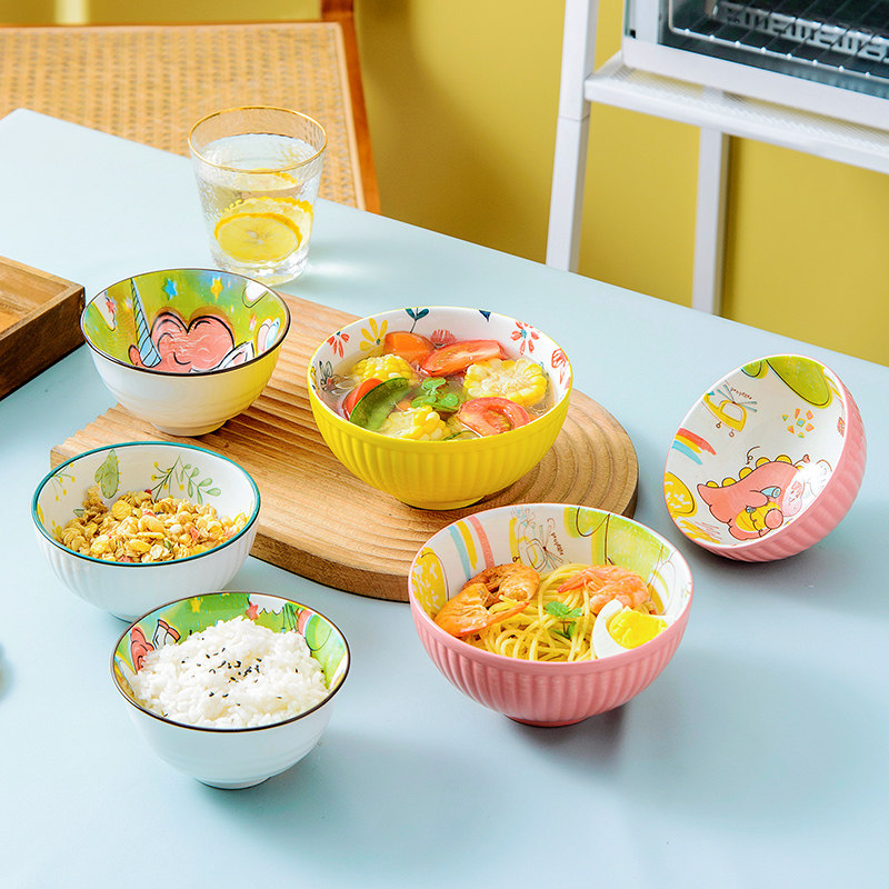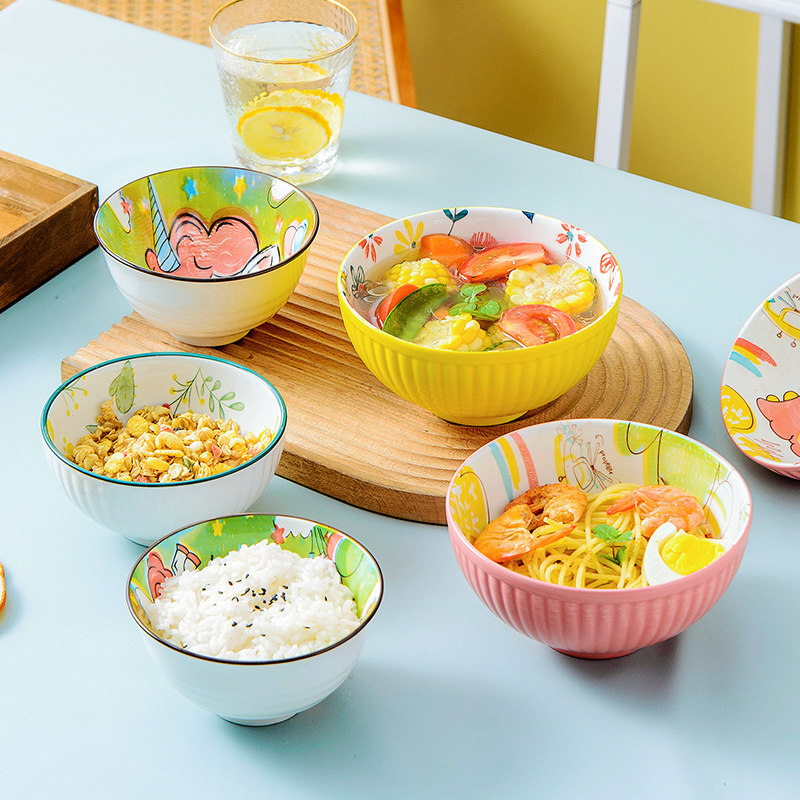 Ceramic bowl home 2021 new eating bowl single noodle bowl large children's cute girl heart instant noodle tableware