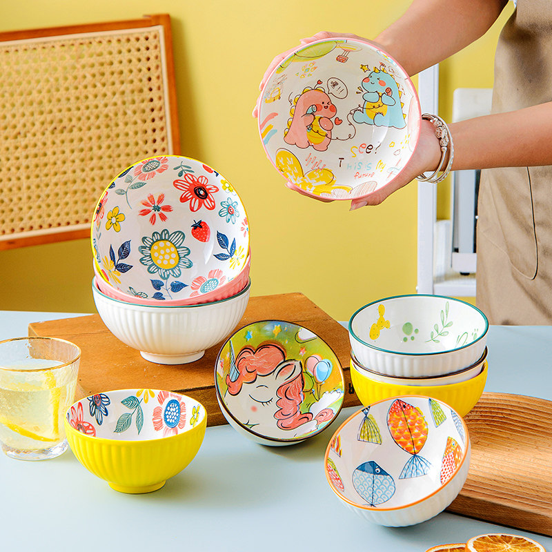 (5-inch rice bowl-affectionate) one (5-inch rice bowl-dinosaur paradise) one (5-inch rice bowl-colorful fish) one (5-inch rice bowl-sunflower) one (5-inch rice bowl-