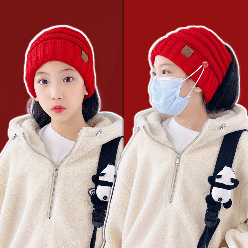 Can hang mask ponytail hole wool hat