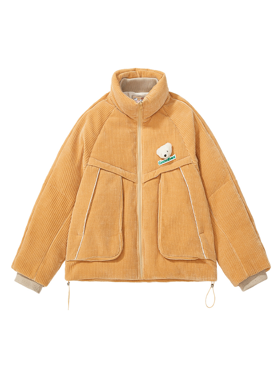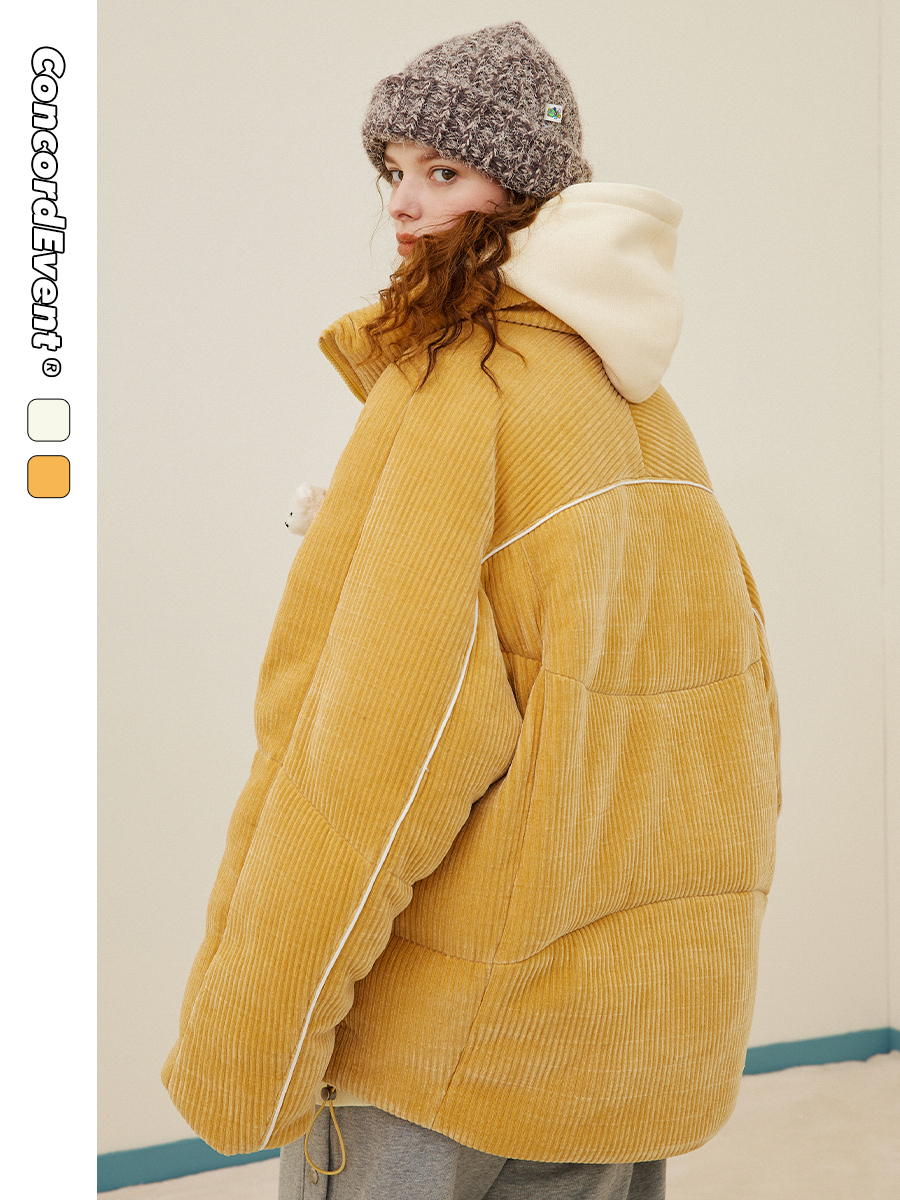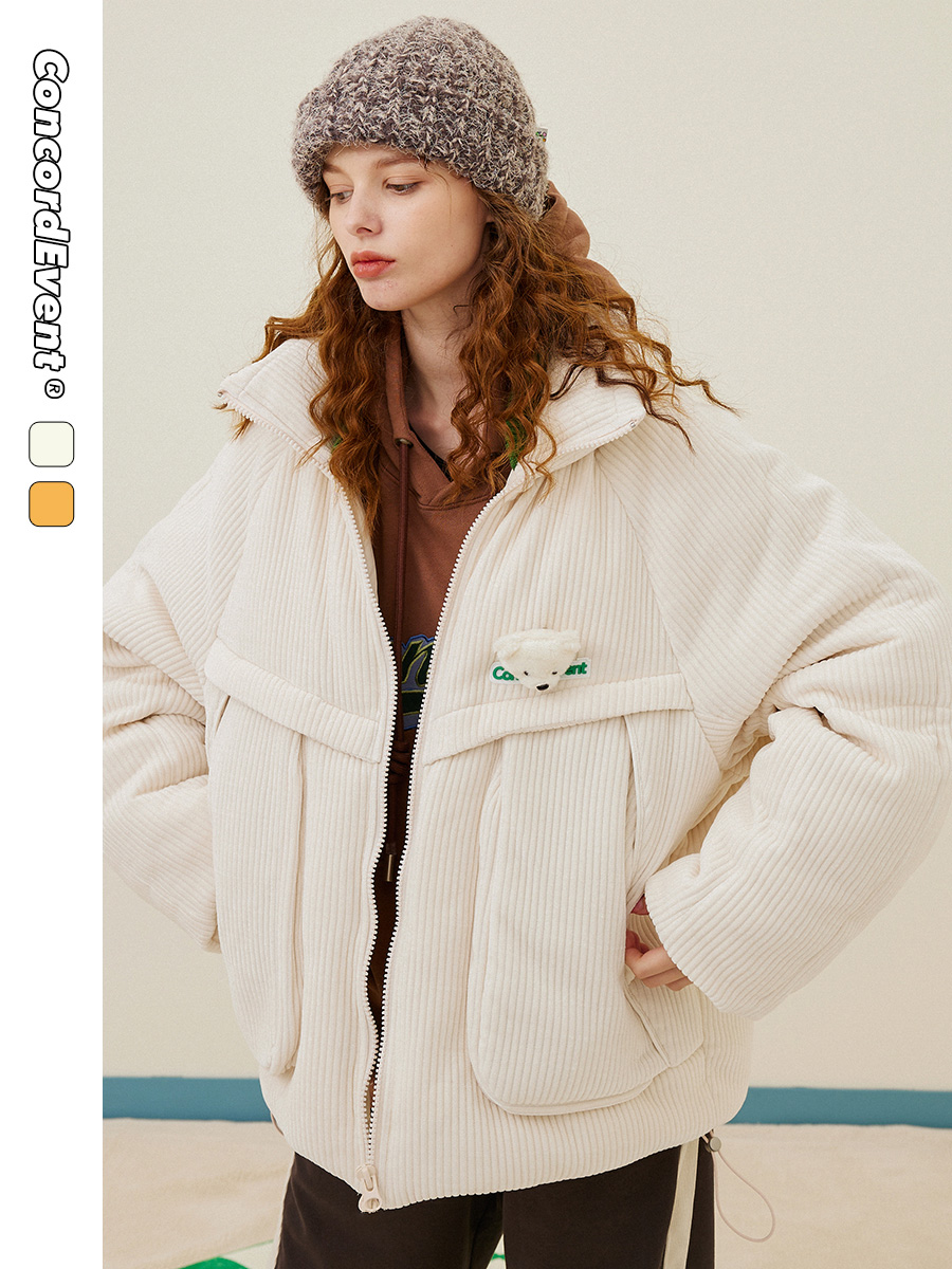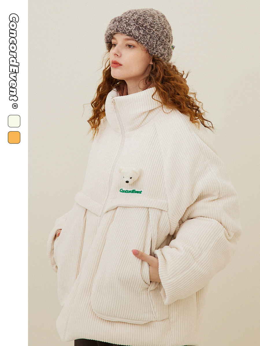 CONCORDEVENT bear striped velvet thickened stand-up collar down jacket men's thickened short tide brand jacket winter new