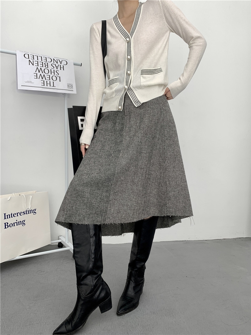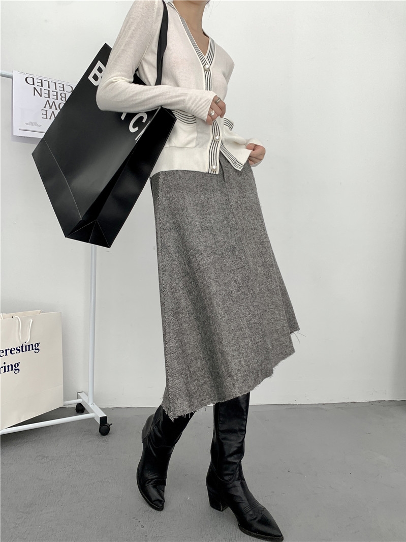 Xiaoxiaola 1937 High-quality Worsted Wool Skirt with Irregular Design Stitching High Waist Slim Dress