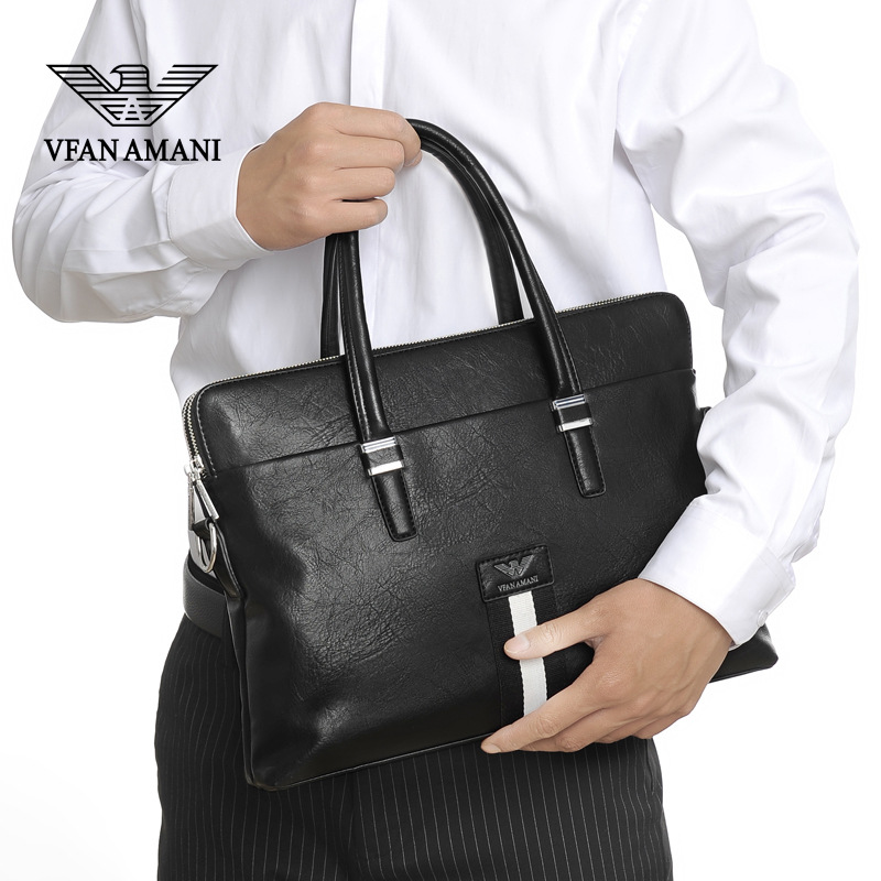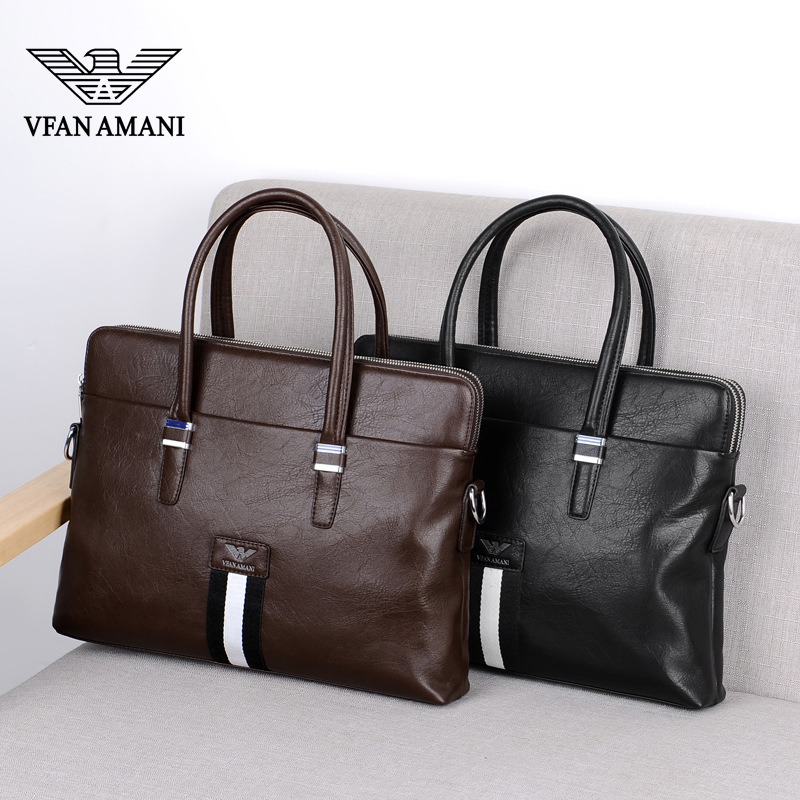 Viv Armani Men's Handbag Leather Business Brief Single Shoulder Slipper Bag Bag Bag