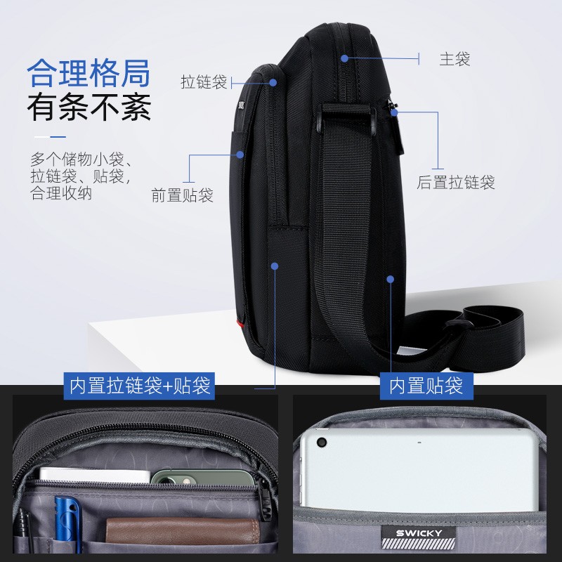 SWICKY Men's Messenger Bag Backpack Shoulder Bag Men's Korean Style Casual Waterproof Bag Trendy Business Satchel Small Bag
