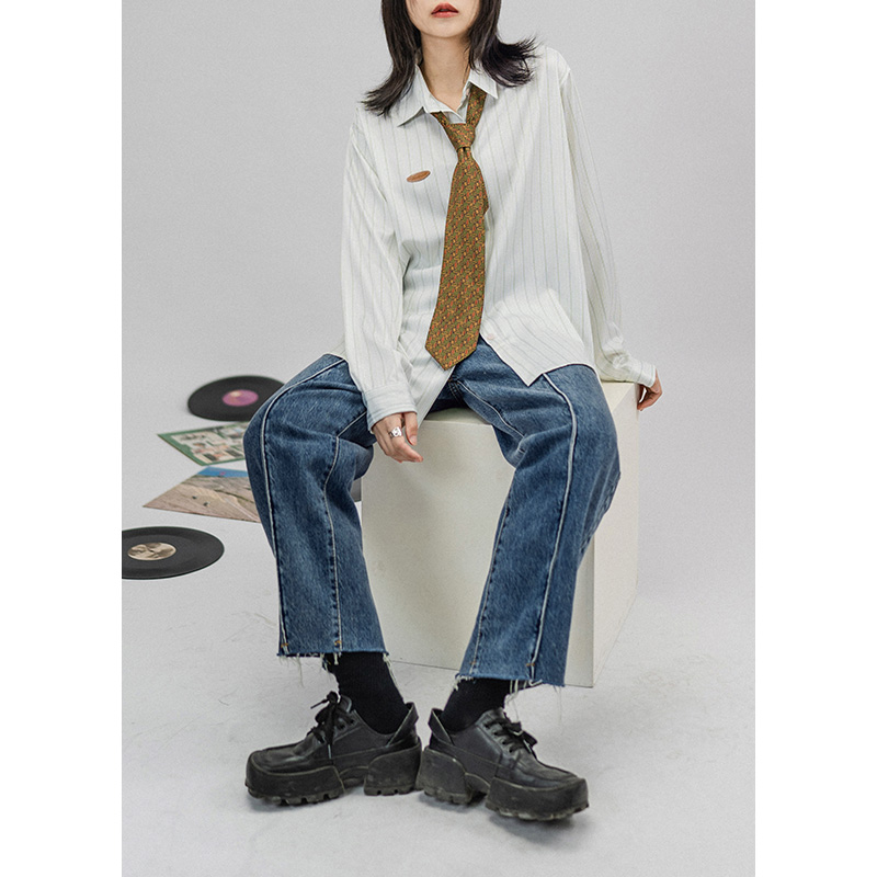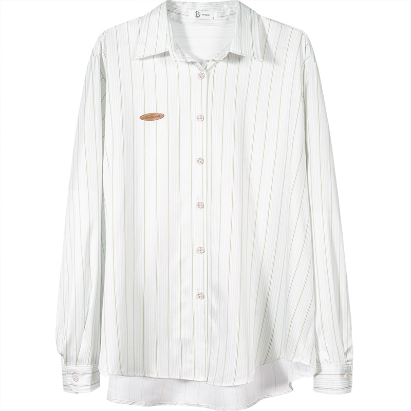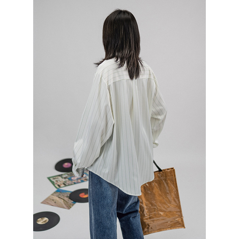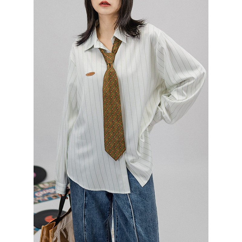 Striped Shirt Woman Retro Day Ensemble Loose lazy blouse small crowdboard lattice button Long Sleeve Casual Stack Wearing Shirt