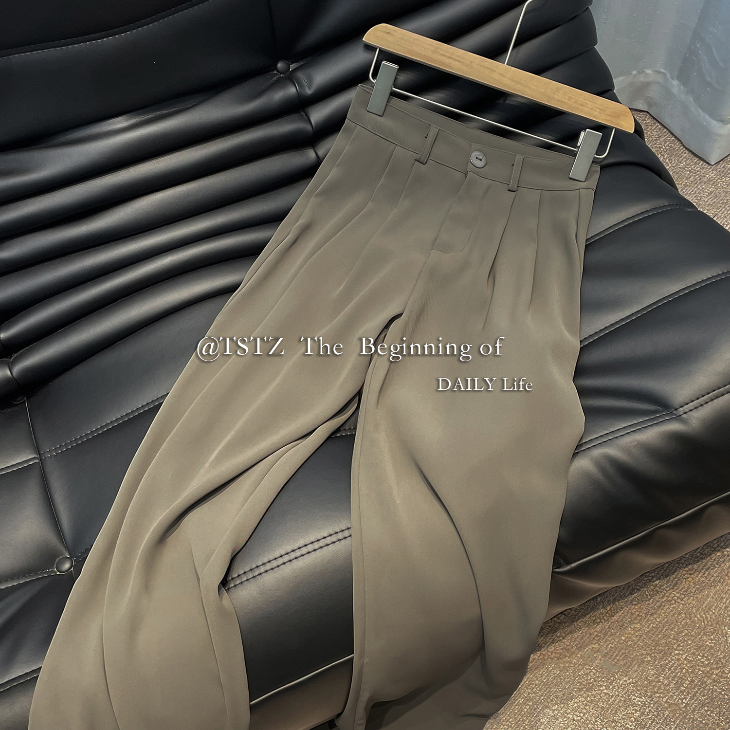 Abu 4 homemade thin 10 pound almond suit casual pants female autumn and winter small straight tube wide broad leg pants