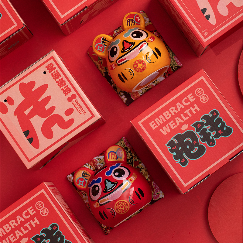 2022 creative ceramic tiger holding money tiger piggy bank money tube annual meeting gift can print logo tiger year mascot