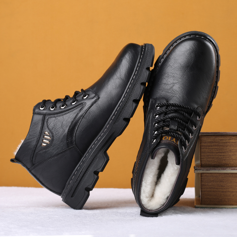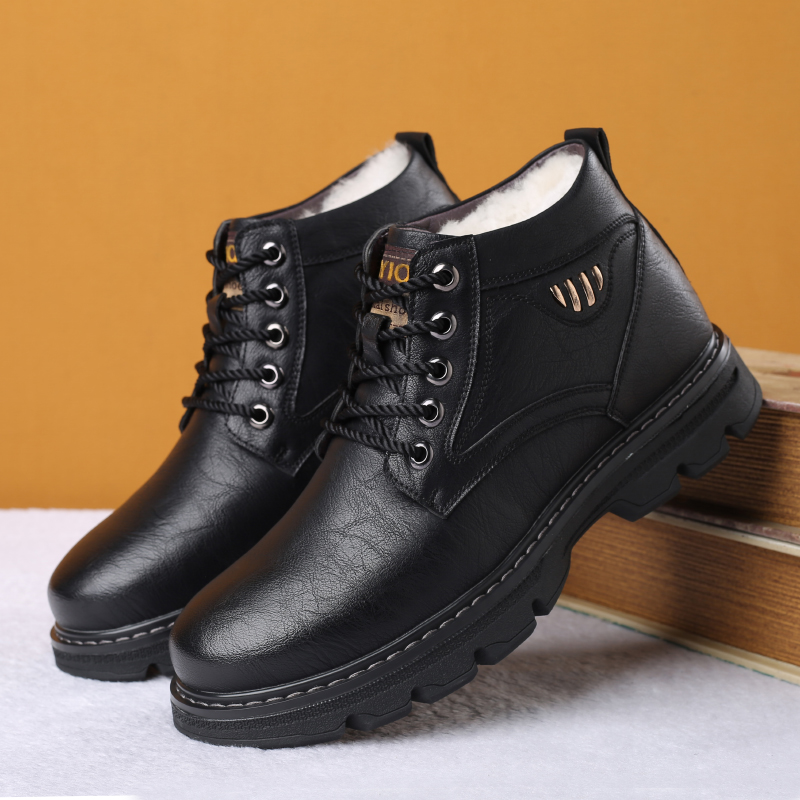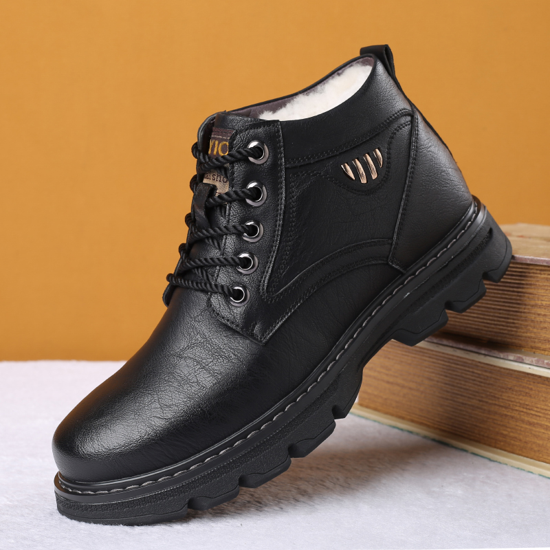 Wooden Sen Cotton Shoes Man Winter Warm and Hawy Wool Men Martin Boots Northeast Cotton Leather Shoes