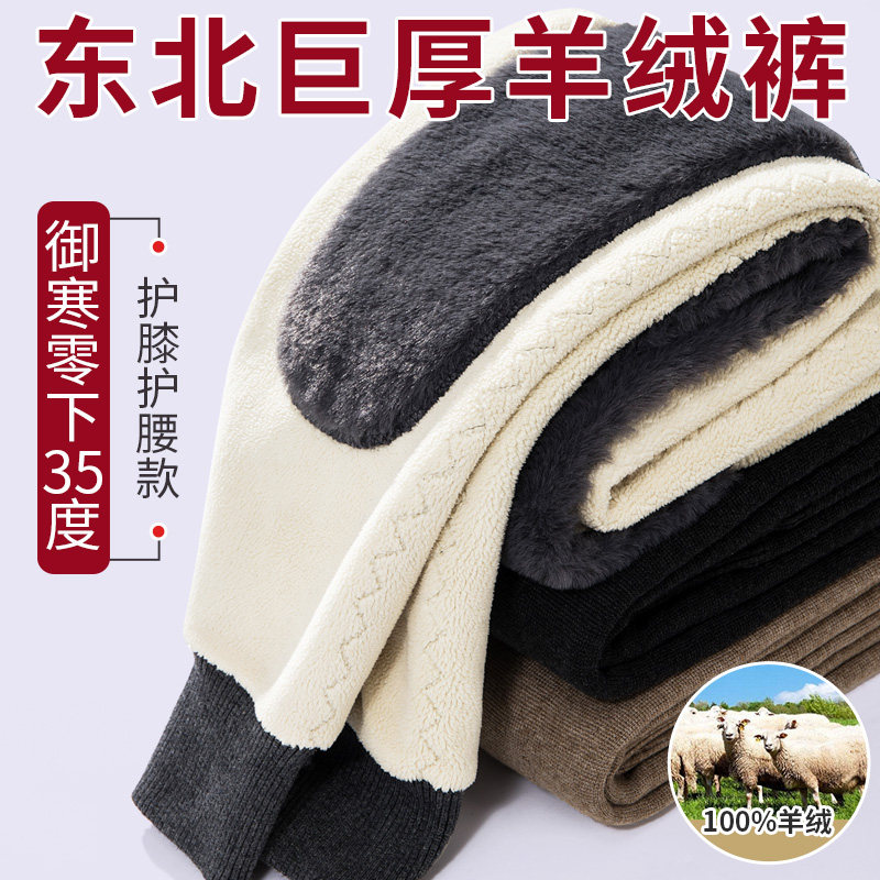 Wool pants men's plus velvet thickened Ordos cashmere pants women's high waist warm pants middle-aged and elderly winter cotton pants