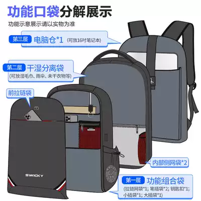 SWICKY Swiss backpack men's business backpack Korean leisure travel bag large capacity pen electric bag
