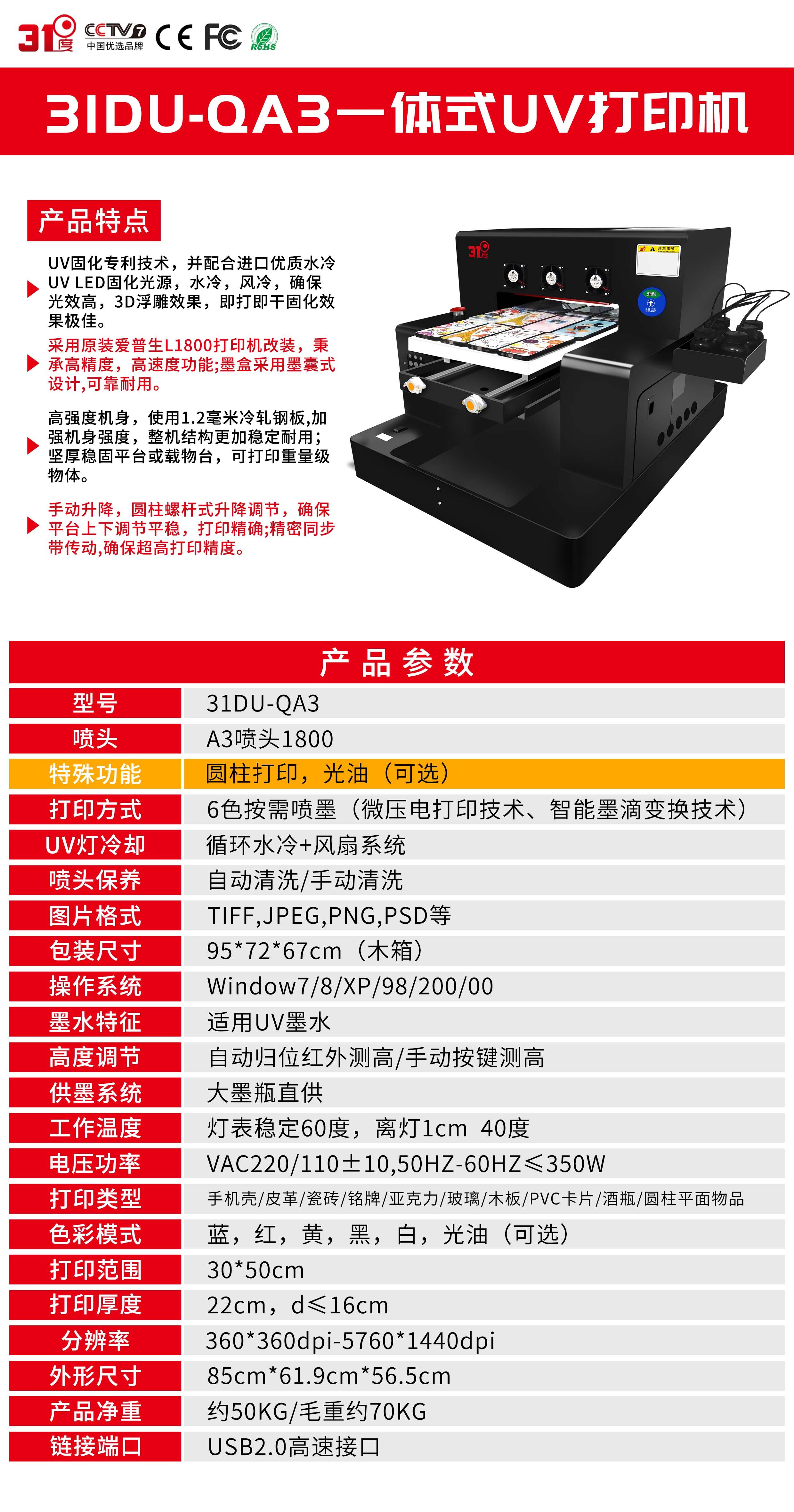 31 degree crystal sticker a4UV printer mobile phone protective shell inkjet small 3D embossed wine bottle plane office business start-up stall