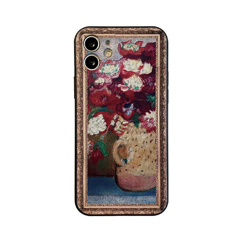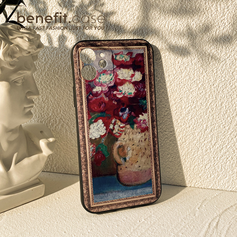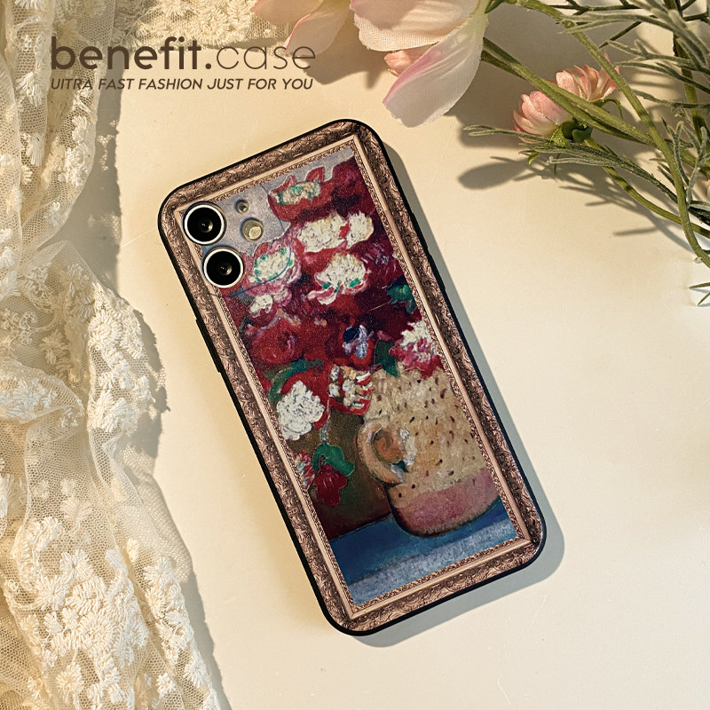 Benefit retro oil painting vase suitable for apple 13promax mobile phone protection shell iphone12mini protective sheath xsmax liquid silicone xr new 8p