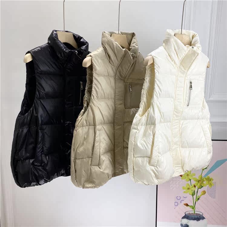 2021 autumn and winter new 90 white duck suede thick and down outside wearing pure Thunder Eurostock Liveneck waistcoat No sleeves Vest Woman