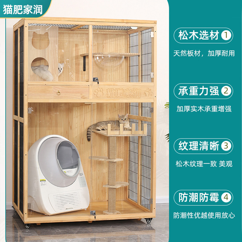 Solid wood cat cage super everyone with cat villa luxury cat house cat house custom breeding cage pet shop show cage