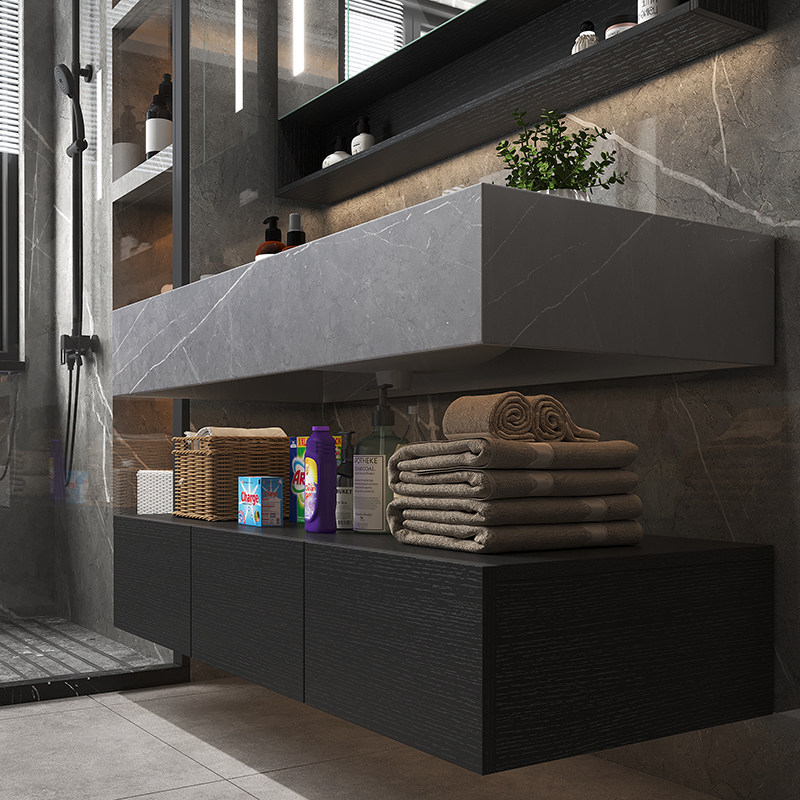 Slate integrated intelligent bathroom cabinet light luxury modern minimalist washbasin cabinet combination washstand bathroom cabinet mirror