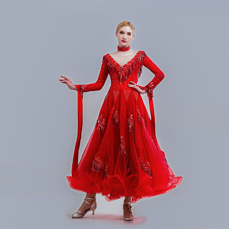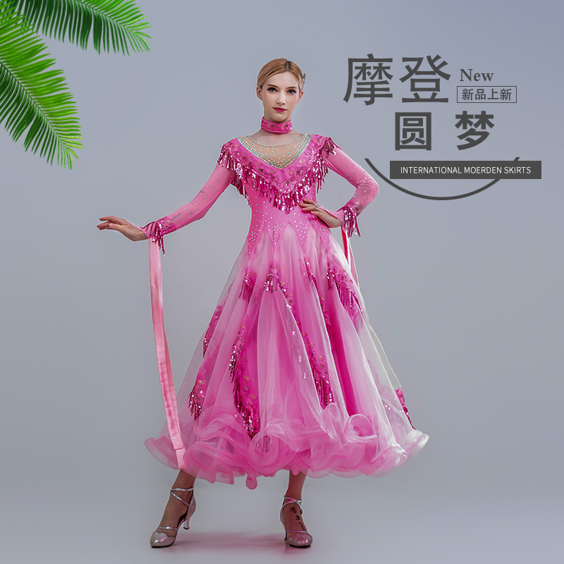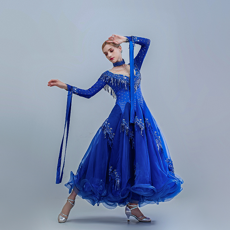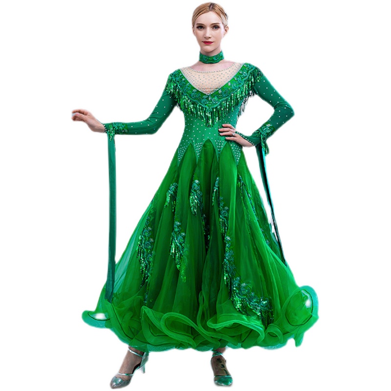 2022 autumn new modern dance dress handmade hot drill big swing long skirt tassel sequin costume waltz