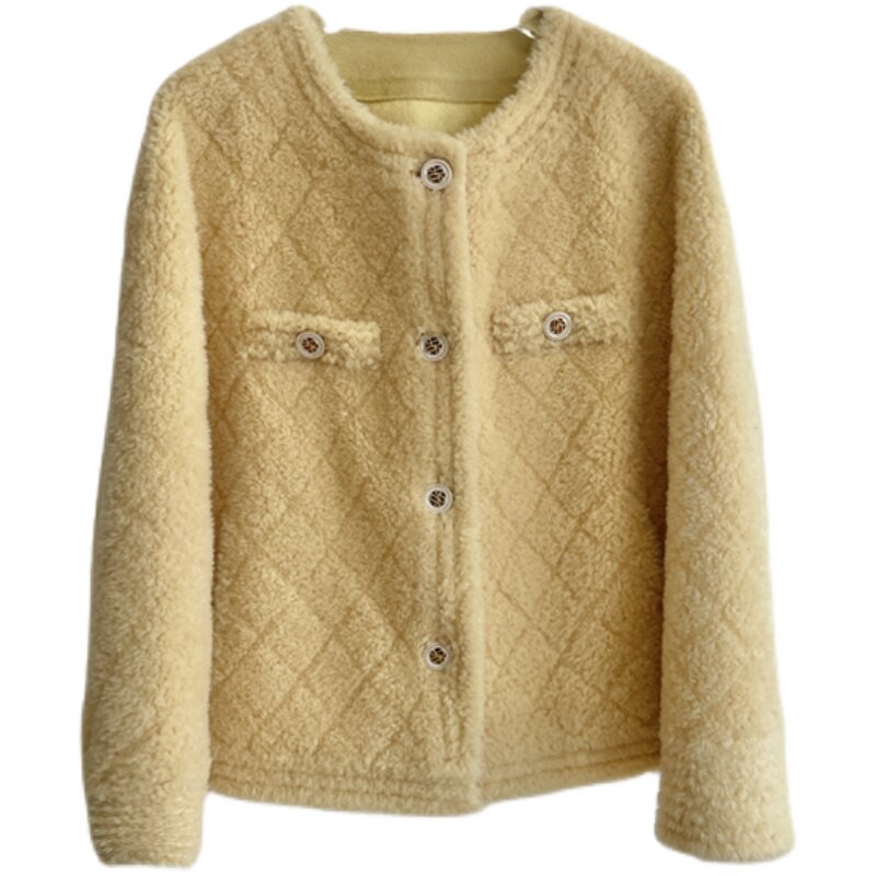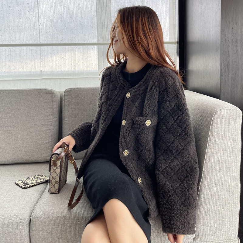 2021 new small short sheep shearling coat lamb wool coat pure wool fur all-in-one women's short