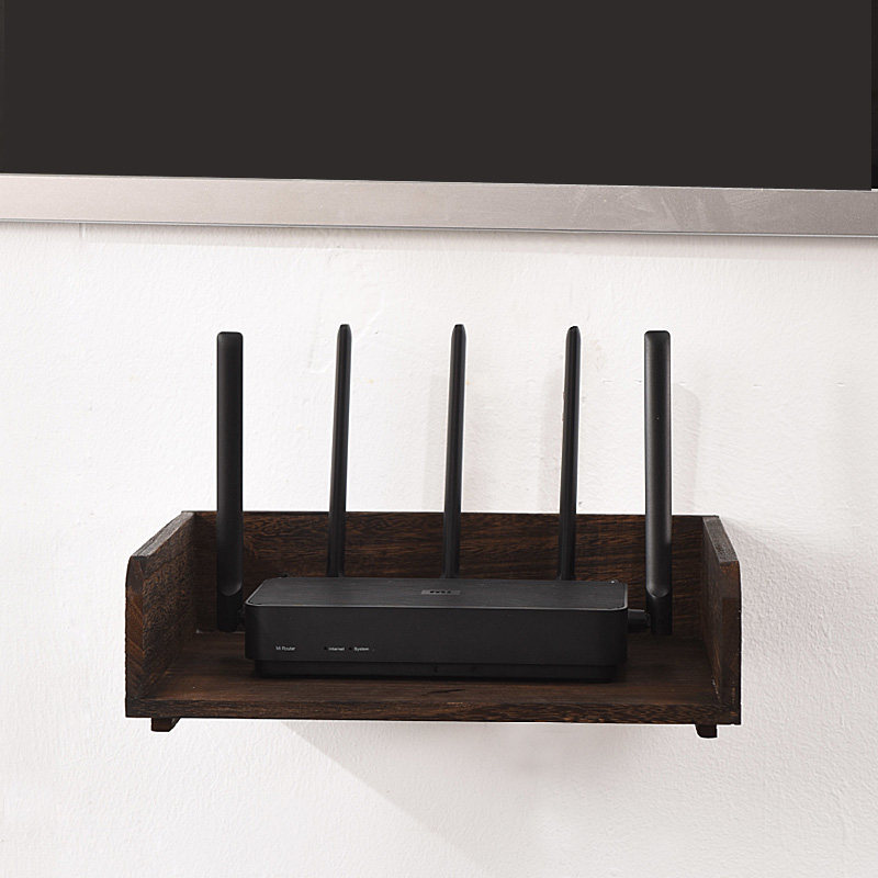 Solid wood projector rack wall-mounted router storage box bracket tea set teapot storage layer rack tea cup display rack