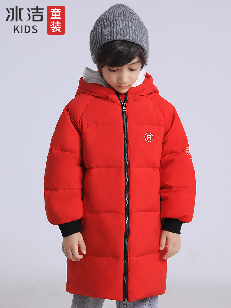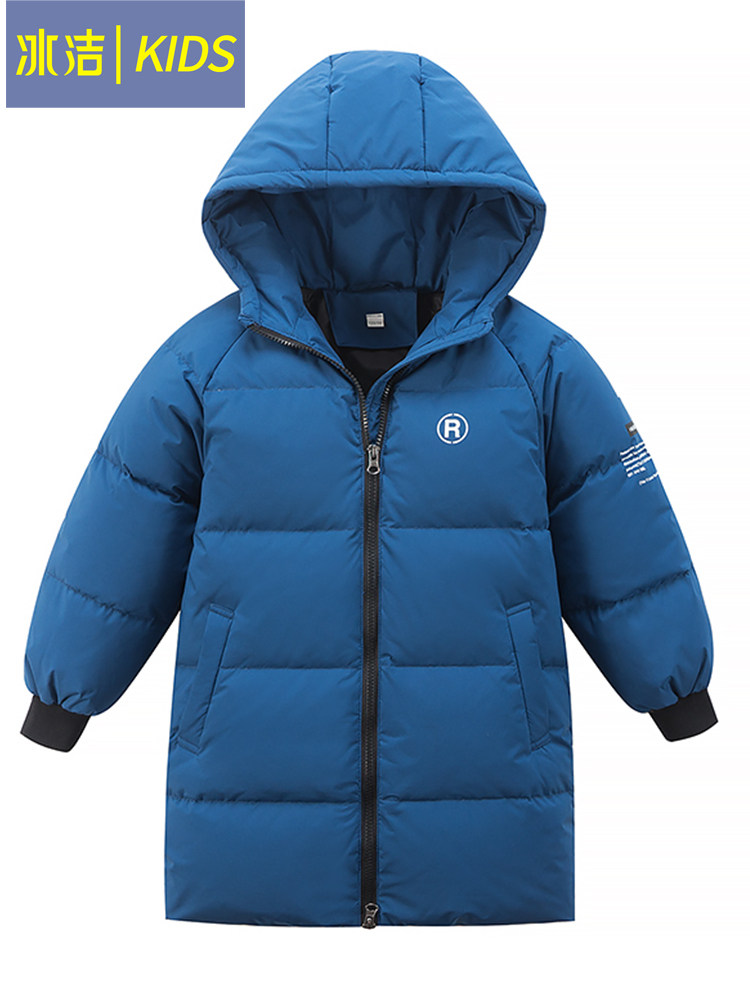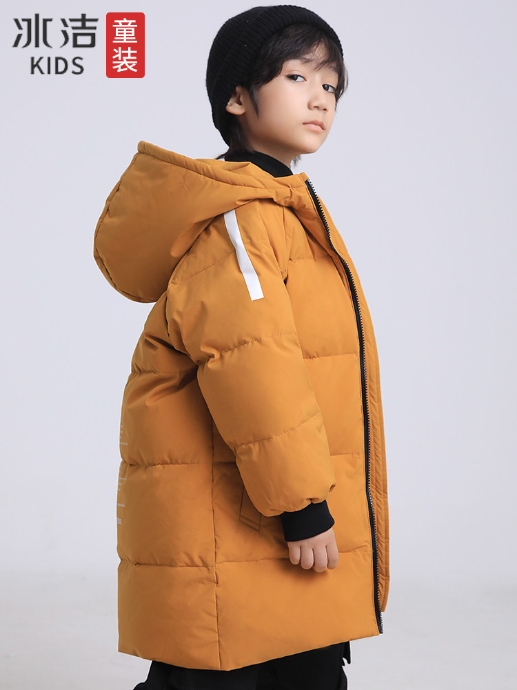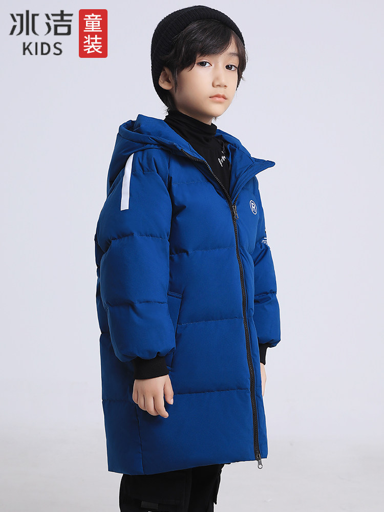 Bingjie children's down jacket boy's mid-length 2022 winter new middle and big children's hooded thickened warm jacket