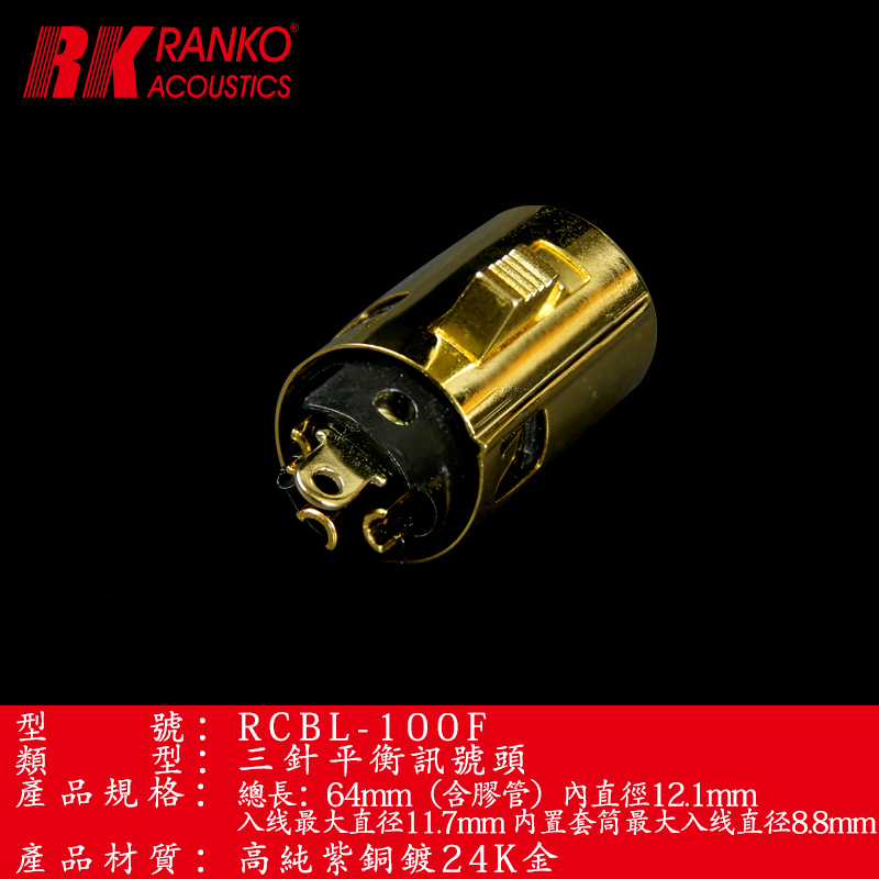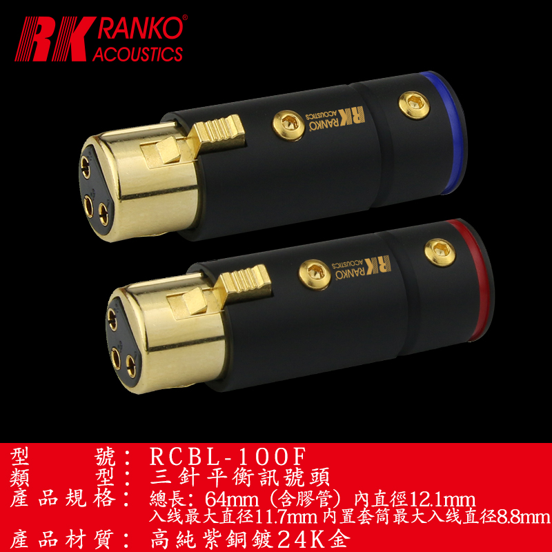 U.S. RANKO Longue RCBL-100F gold-plated balance plug XLR cannon terminal