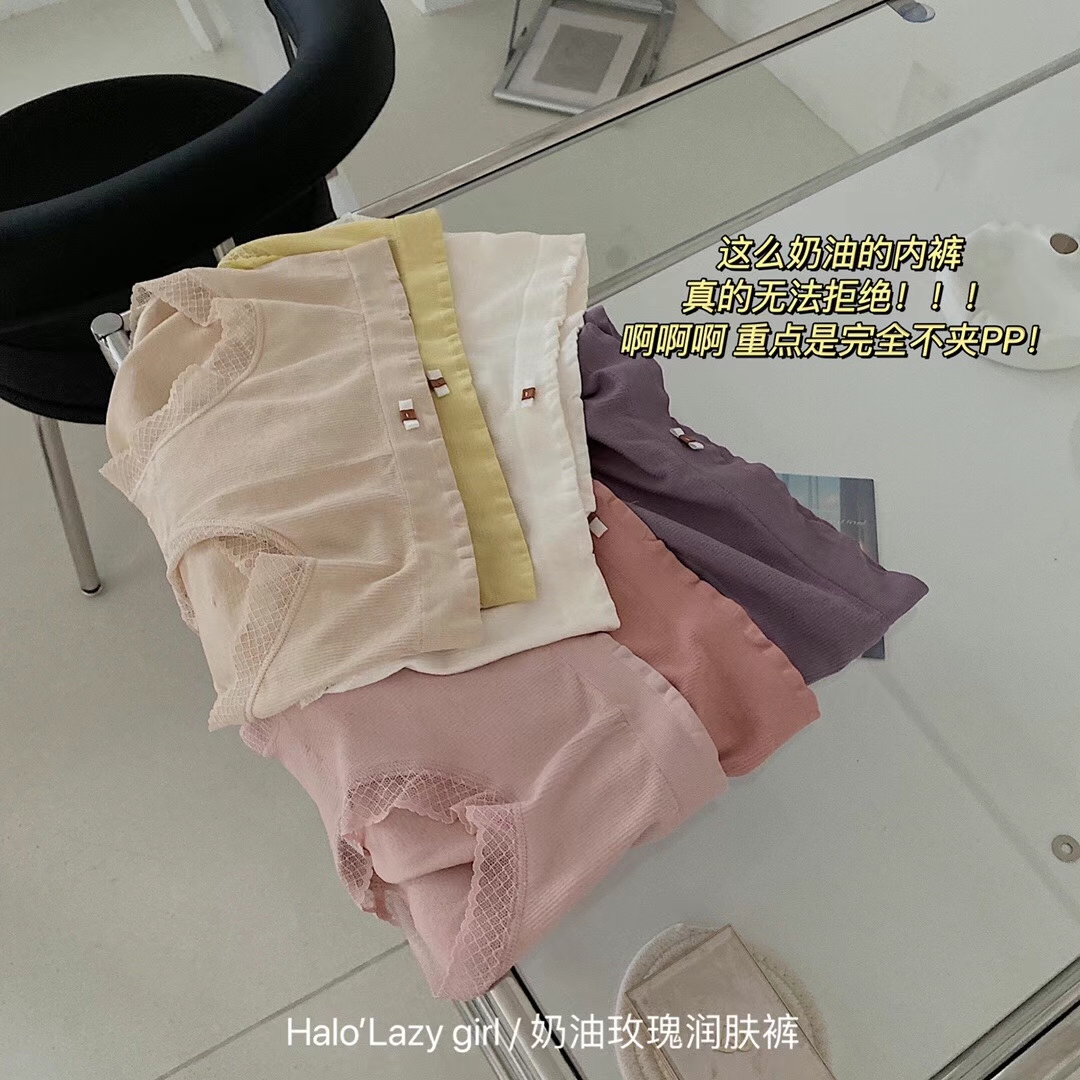 Day Single Cream Rose Moisturizing Skin Lady Briefs Pure Cotton Yarn Antibacterial Bag Hip High Elasticity Skin-to-skin Girl High Waist Triangle