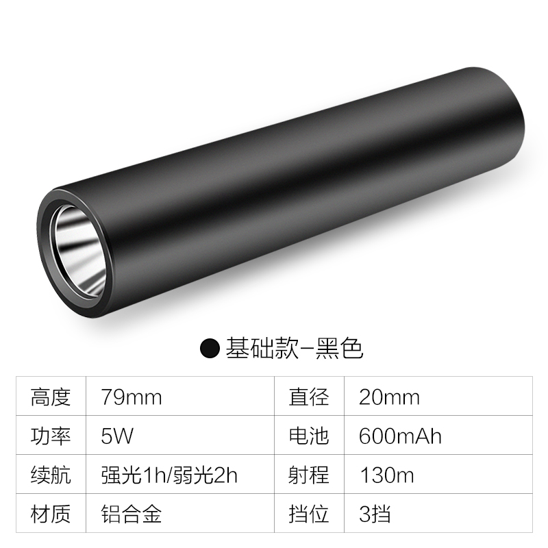 Mini flashlight-black (600mAh) flashlight bracket Mini flashlight-black (600mAh) multifunction fixed bracket 360 degrees rotary mini flashlight -