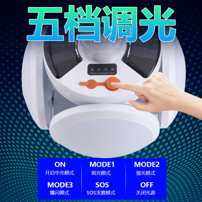 RV Outdoor Solar Bulb Lamp Charging Four Sides Folding Football Lamp Super Bright LED Night Market Stall Camping Lamp