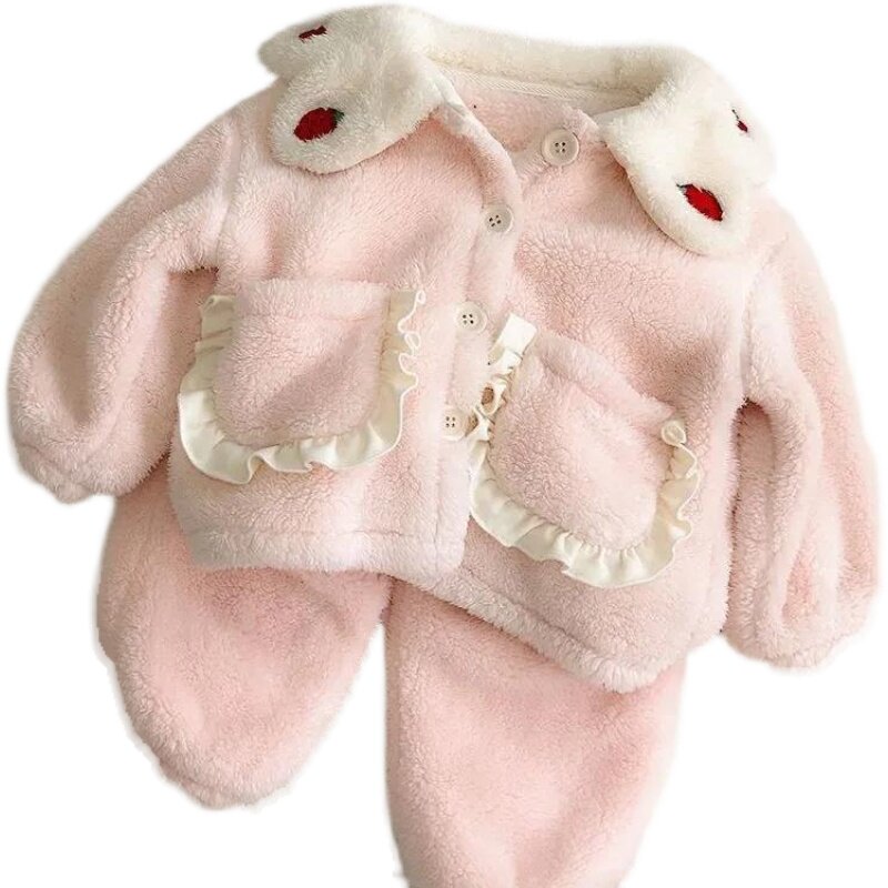 Girl Sleepwear 2021 New Autumn Winter Suit Women Baby Trendy Foreign Pie Flannel Children's Home Suit Suit