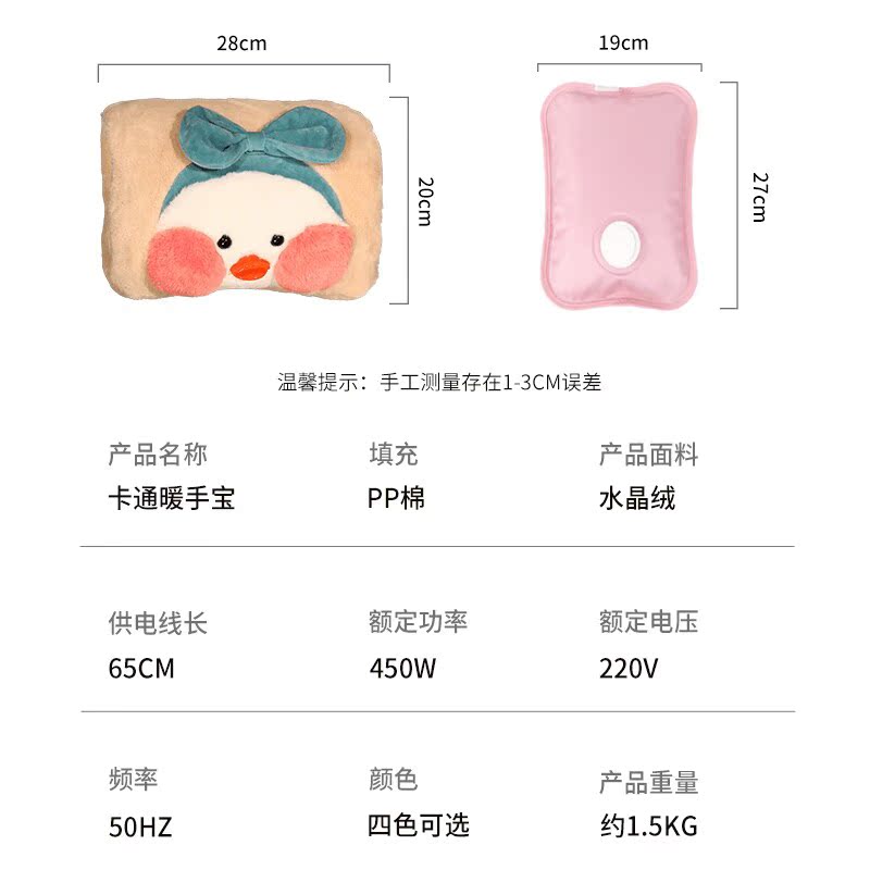 Butterfly green duckling Explosion-proof hot water bag Butterfly-bowed yellow duckling Explosion-proof hot water bag Butterfly - bowed hot duckling Pink duckling pocket explosion - proof hot water bag