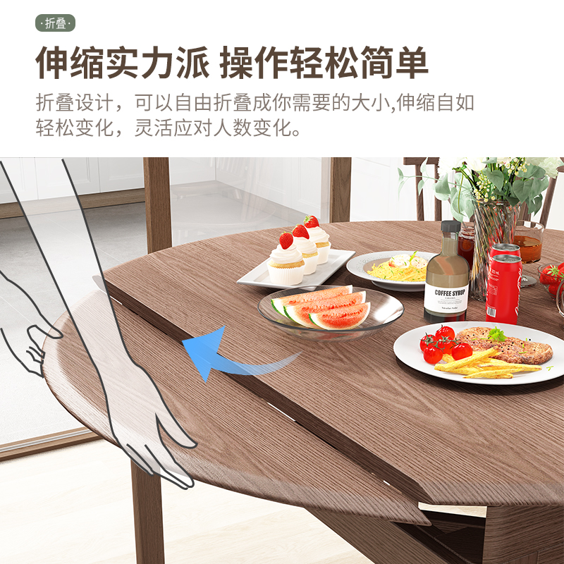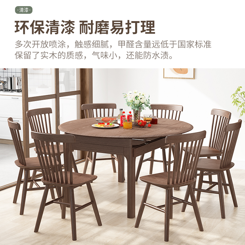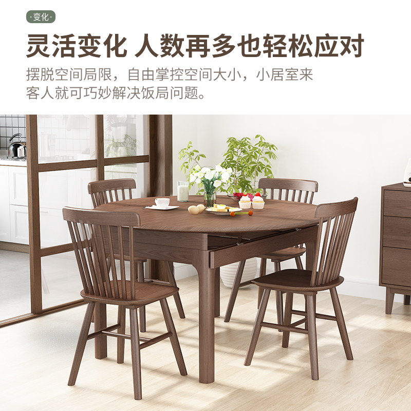 All solid wood dining table and chairs round Nordic simple modern dining table small apartment retractable dining table variable round table home