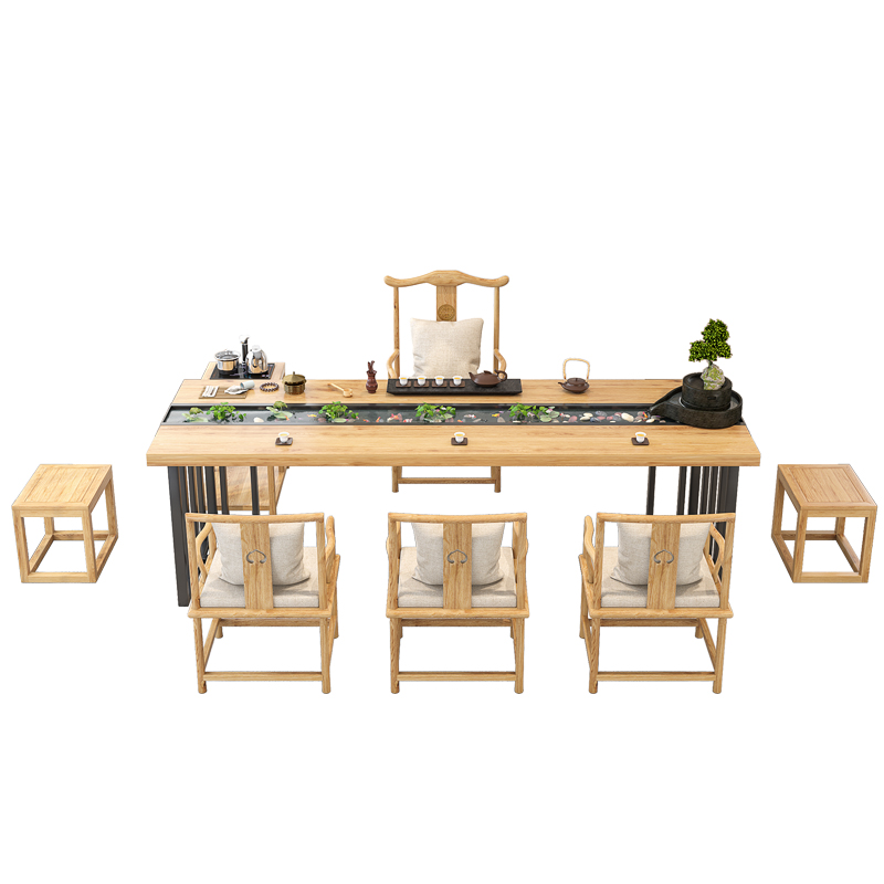 New Chinese Flowing Water Tea Table Chair Combined Log Kung Fu Tea A Few Zen Demeaning Modern Minimalist Office Solid Wood Tea Table
