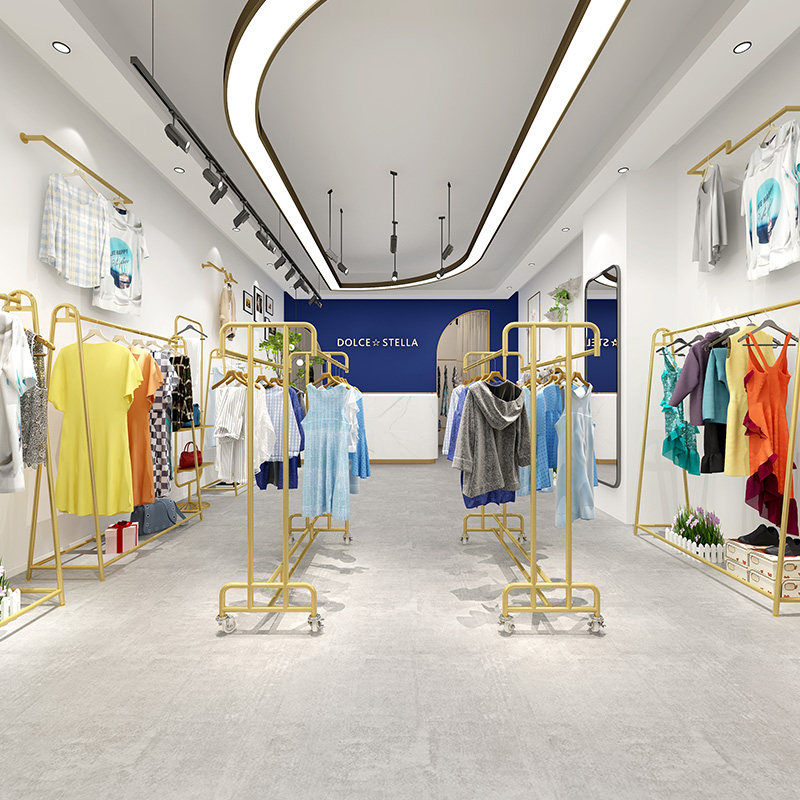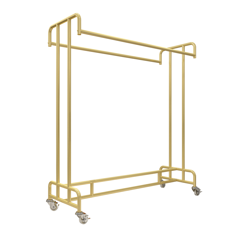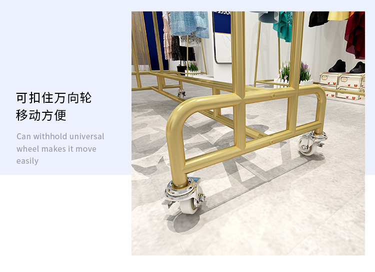 Clothing island double-bar display rack hanging clothes shelf floor-to-ceiling parallel bars children's clothing store display rack plus wheel removable