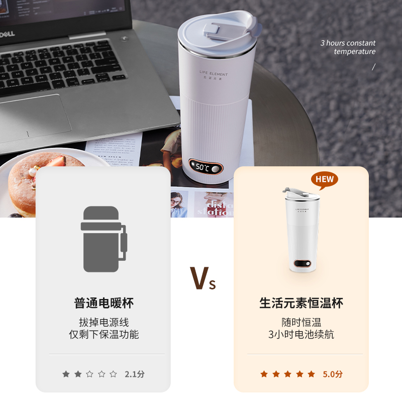 Living Element Wireless Heating Cup 50 °C Thermostatic Cup Baby Out of Insulated Coffee Cup Portable USB Charging