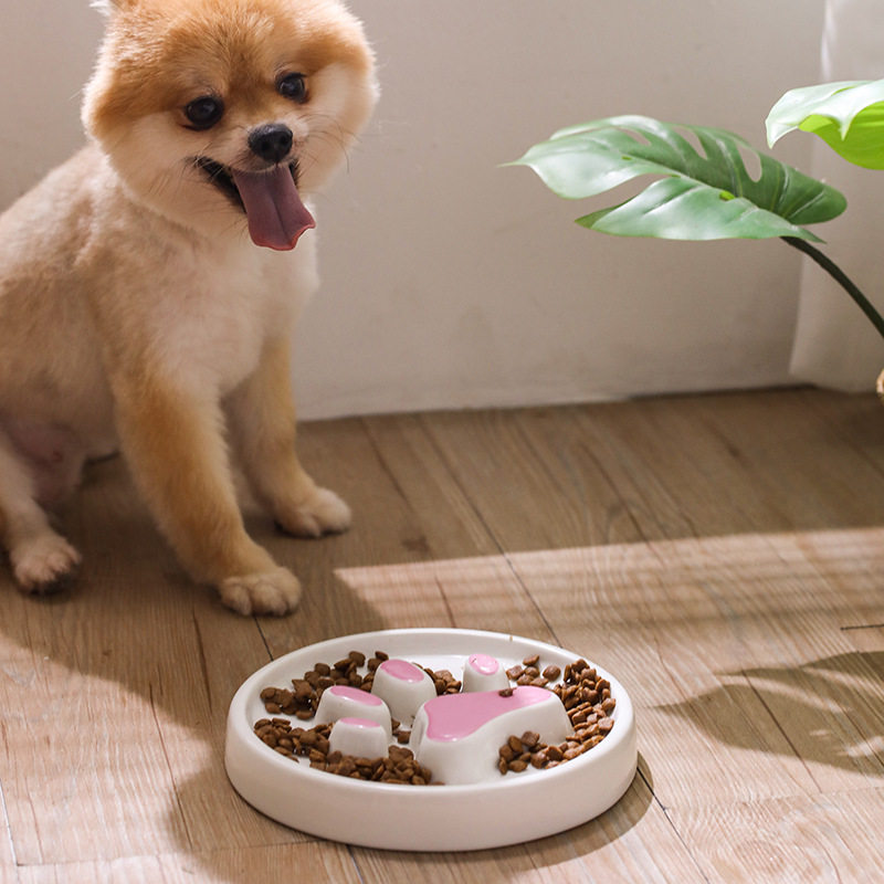Slow food bowl ceramic dog dog cat eats dog food bowl pet supplies anti-choking feeder
