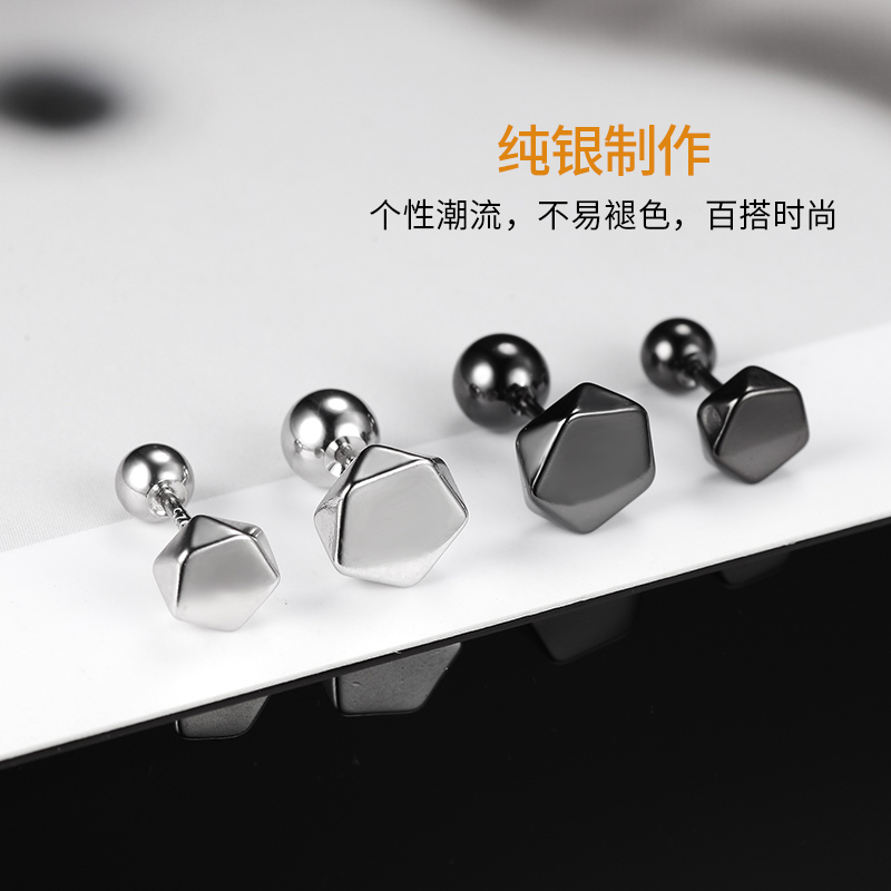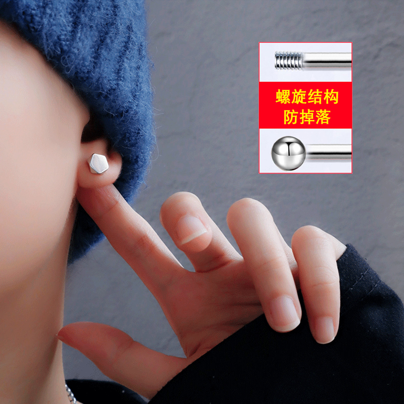 Pure silver earnails male in 2022 new tide only ear tide female male spiral tide button earrings male