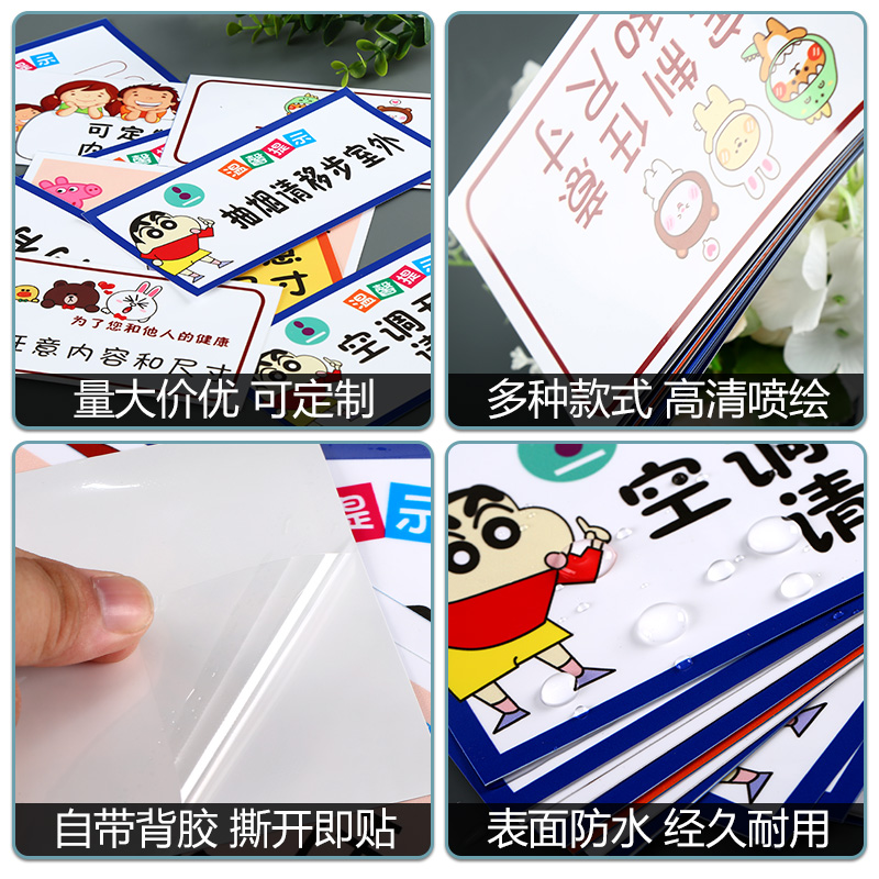 Air conditioning open no smoking reminder sign warm notice sticker paper wifi logo carefully slip head logo sticker dressing room refuse to bargain for valuables sign wall sticker listing custom