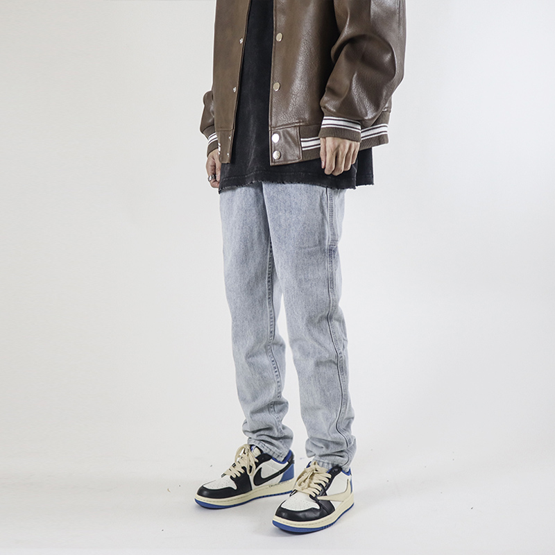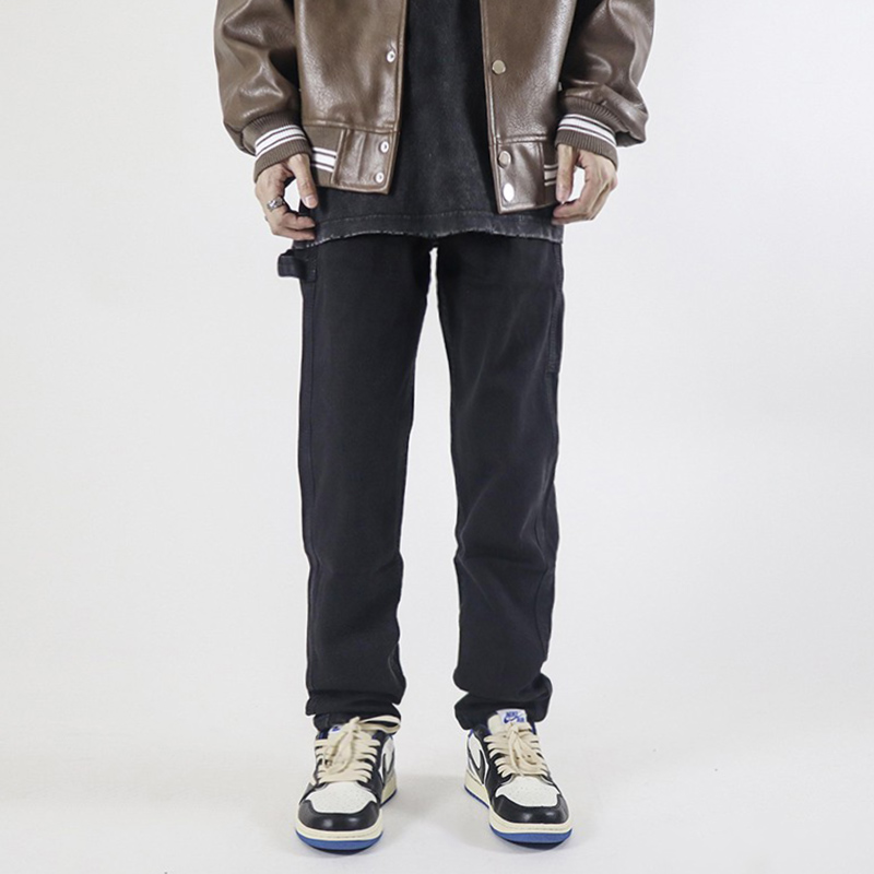 Pocket INS European and American high street pants American vibe straight tube loose black jeans casual pants tide male