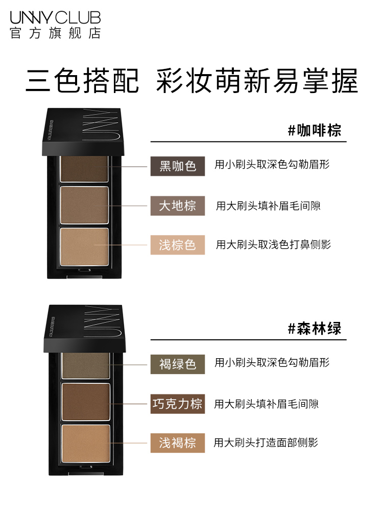 unny eyebrow powder tray female waterproof perspiration without falling color persistent natural tri-color brow powder fix with high light three-in-one