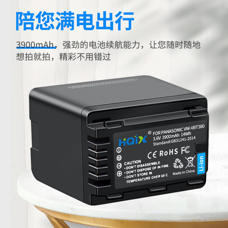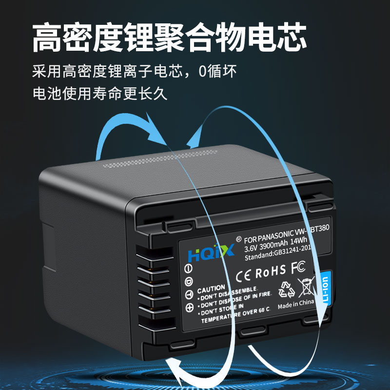 HQIX suitable for Panasonic HC-W585 V385 W850M camera VW-VBT380 battery dual charger