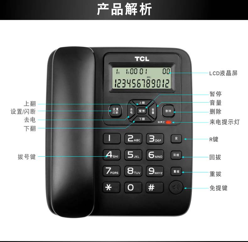 TCL telephone business office Hotel creative caller ID battery-free home wall hanging cable