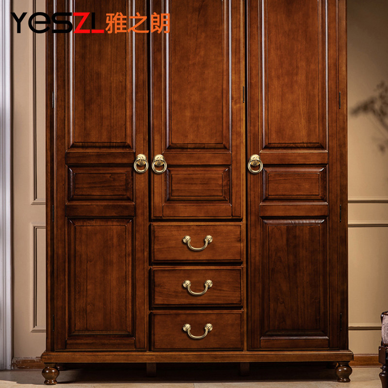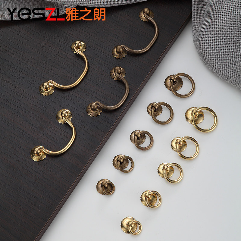 Pure copper cabinet drawer handle all copper door ring antique brass new Chinese retro bookcase hardware copper handle
