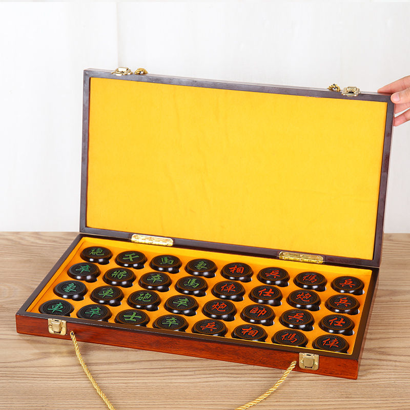 Solid Wood Chess Upscale Big Numbers Black Sandalwood China Elephant Chessboard Suit Red Wood Household Adult Portable Fold