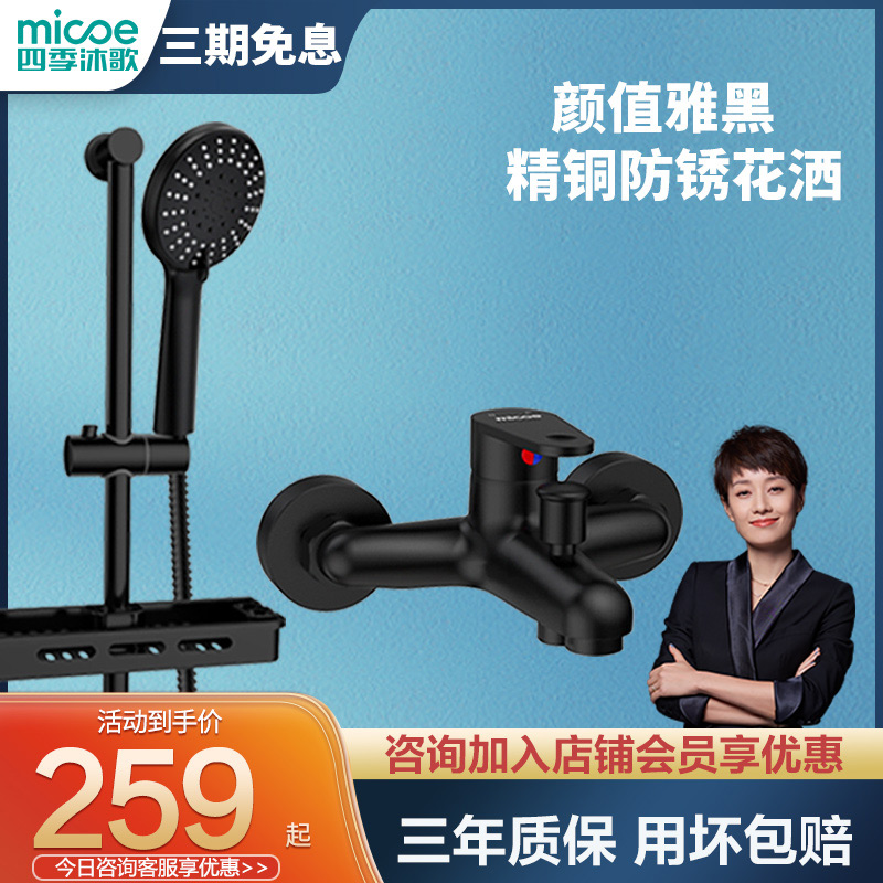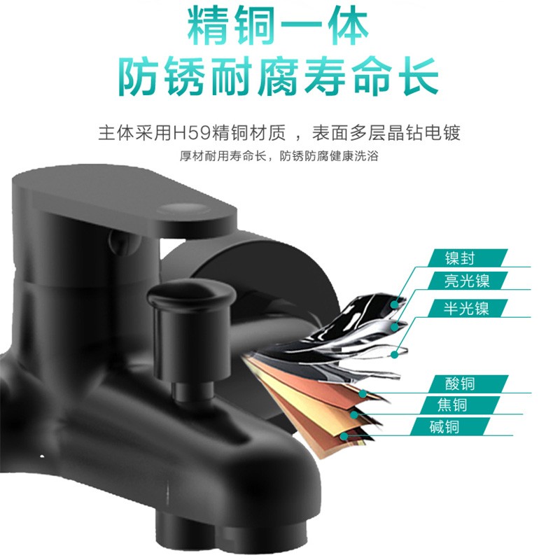 Four Seasons Body Wash Black Simple Shower Head Suit Home Shower Shower Shower Nozzle Full Copper Bathroom Booster Shower Shower